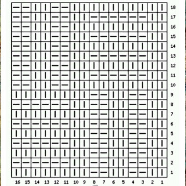 Вертикальная черточка – это лицевая петля , а горизонтальная черточка – это изнаночная, вяжем нужную высоту, у меня получилось 22 см.