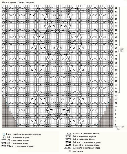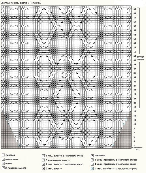 След. круг. р.: вязать по рисунку и по схемам прямо, включая прибавленные петли в рисунок изнаночной глади.