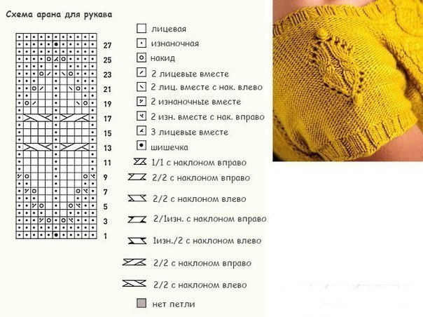 След. круг. р.: вязать по рисунку и по схемам прямо, включая прибавленные петли для рукавов в рисунок изнаночной глади.