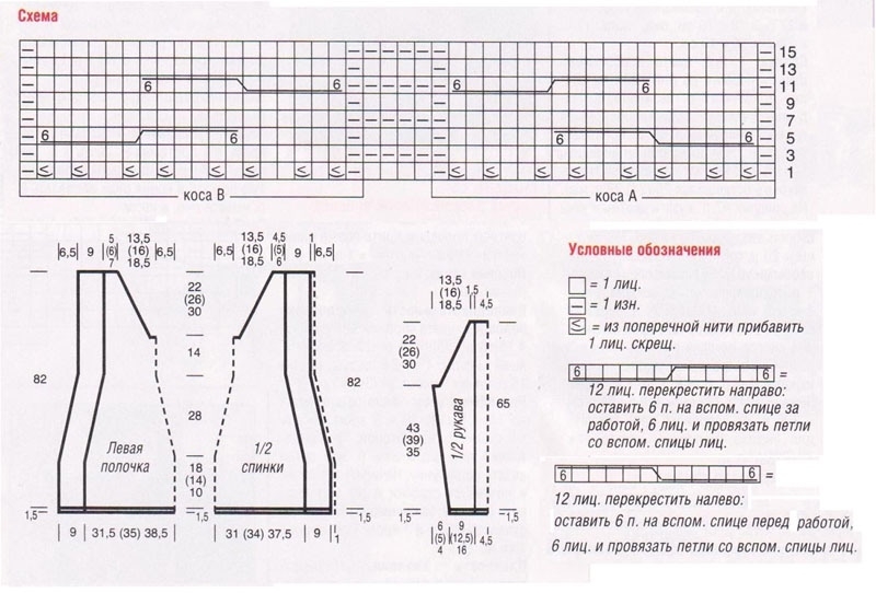 Правый рукав: вязать, как левый рукав, но с косой В.