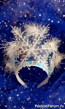 Чтобы как то примкнуть к вашей творческой компании, Хочу показать свою корону со шлейфом Снежной королевы . на Новогоднем балу, в 2024 г. Делала сама из того что было..