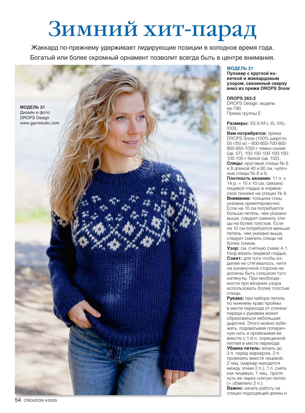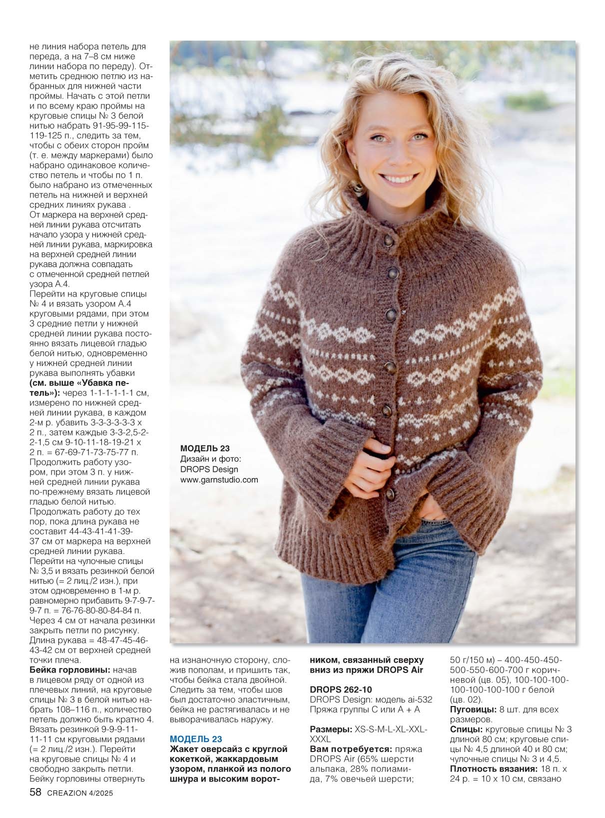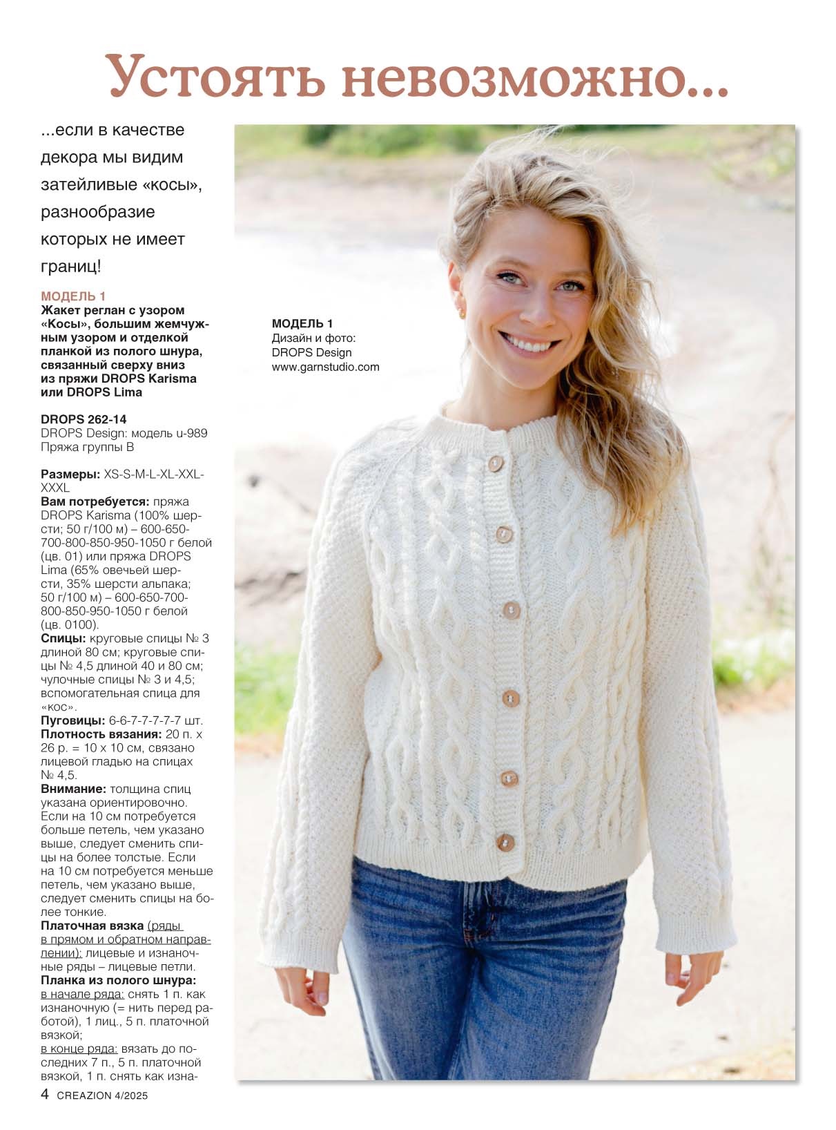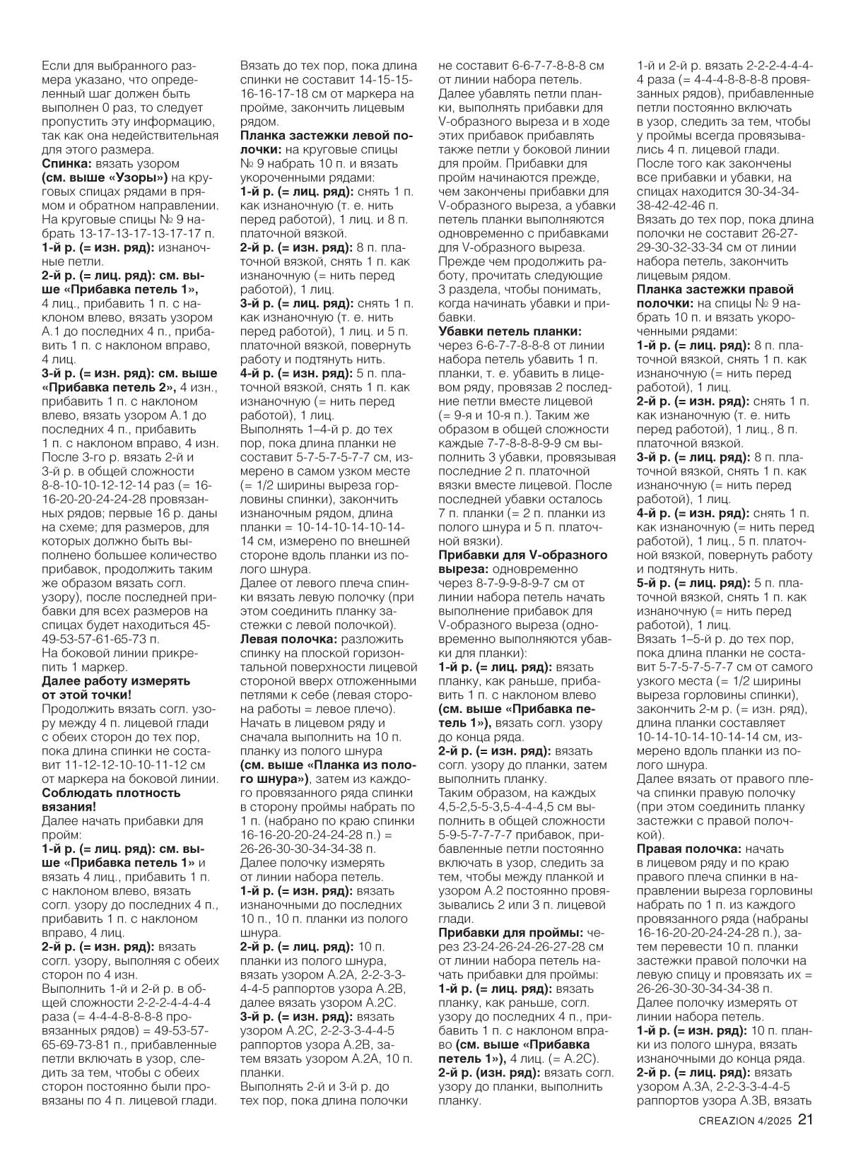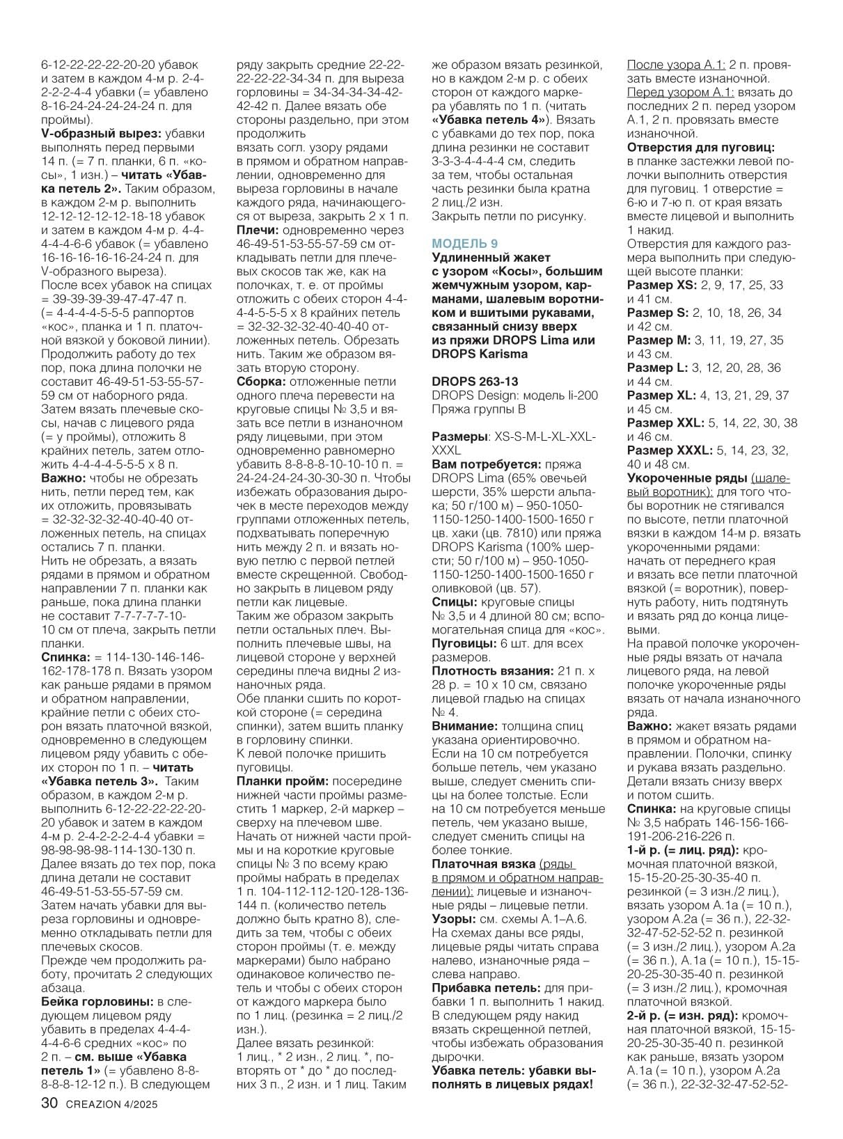 Журнал по вязанию предлагает практичные и одновременно креативные модели европейских дизайнеров. В номере коллекция трикотажа нового сезона, в которой успешно сочетаются базовые и оригинальные модели, связанные на спицах или крючком. Привлекательные детали, а также разнообразные узоры - жаккардовые, ажурные, рельефные - придутся по вкусу самым искушенным любителям вязания.