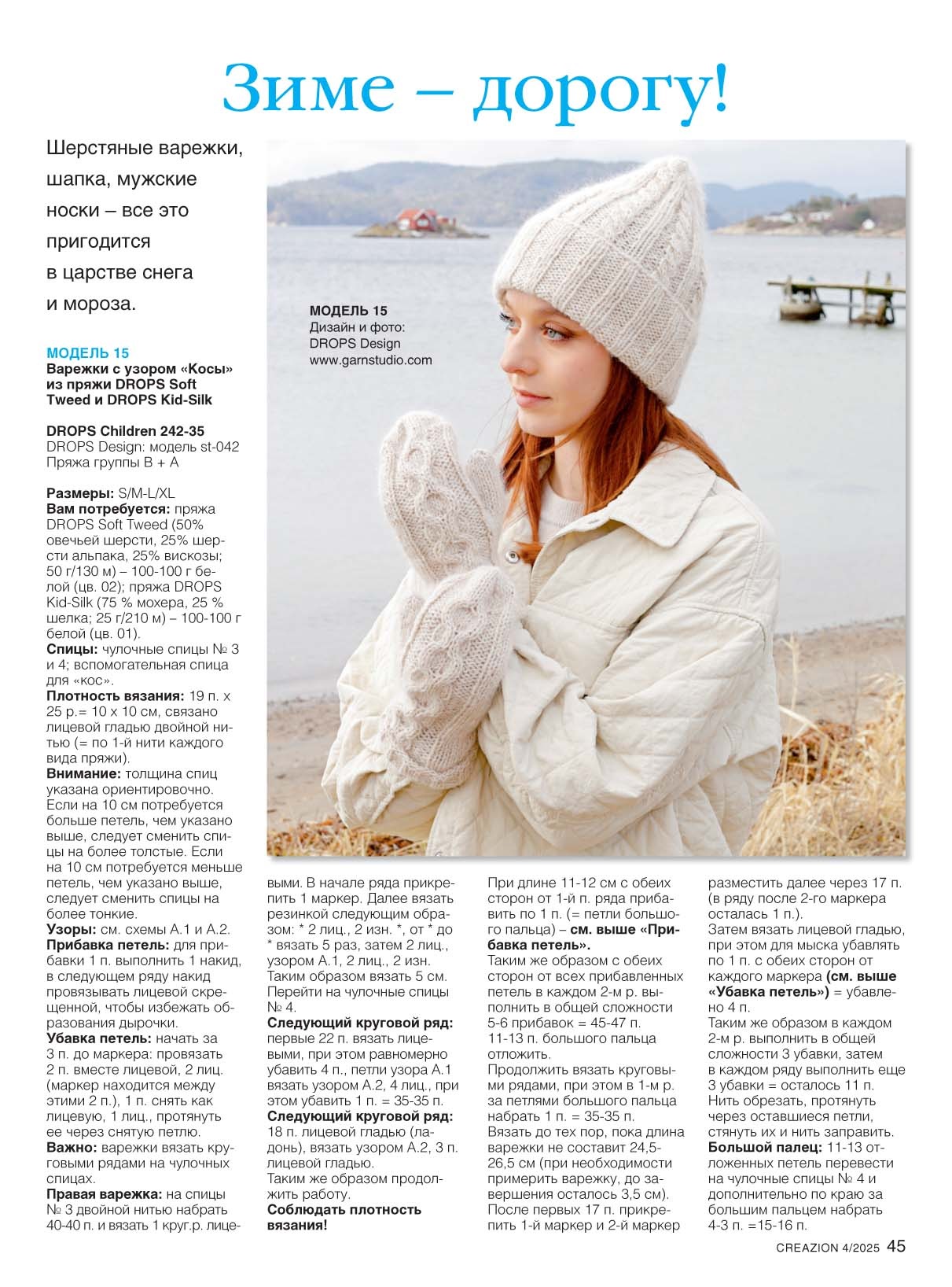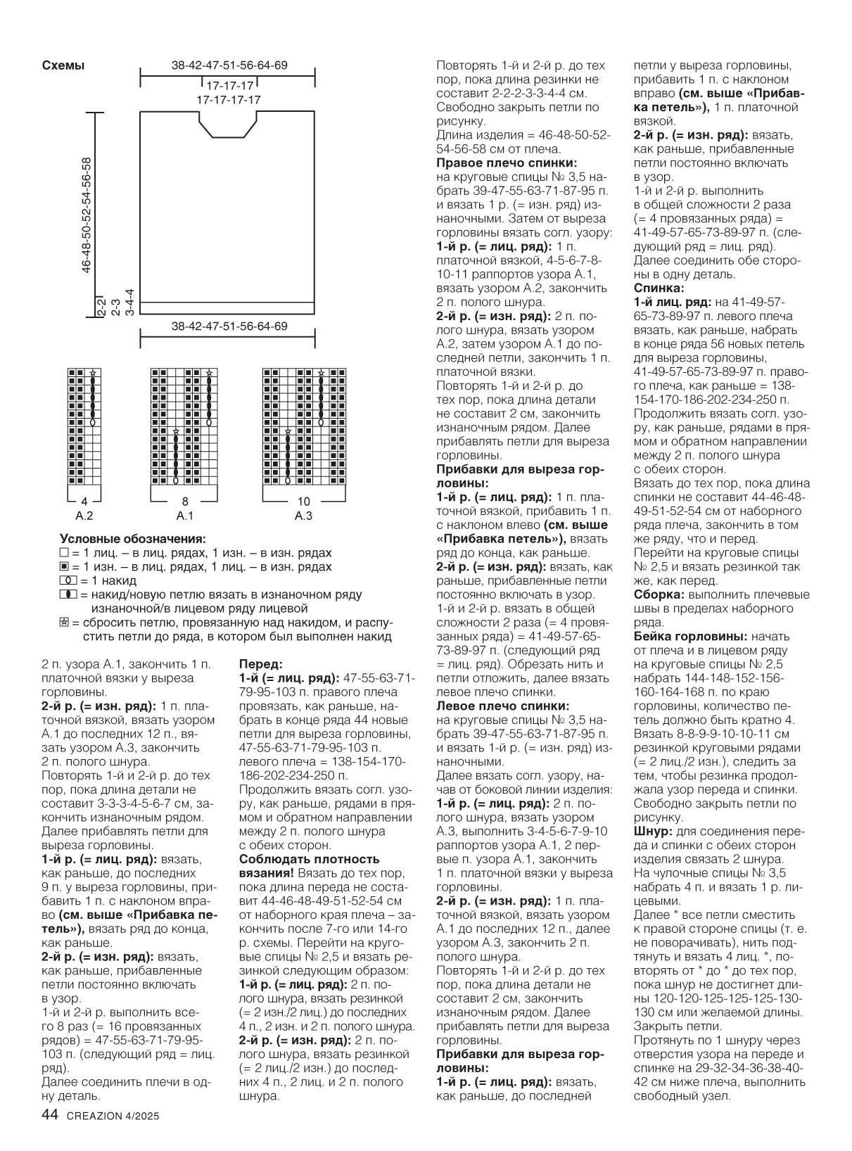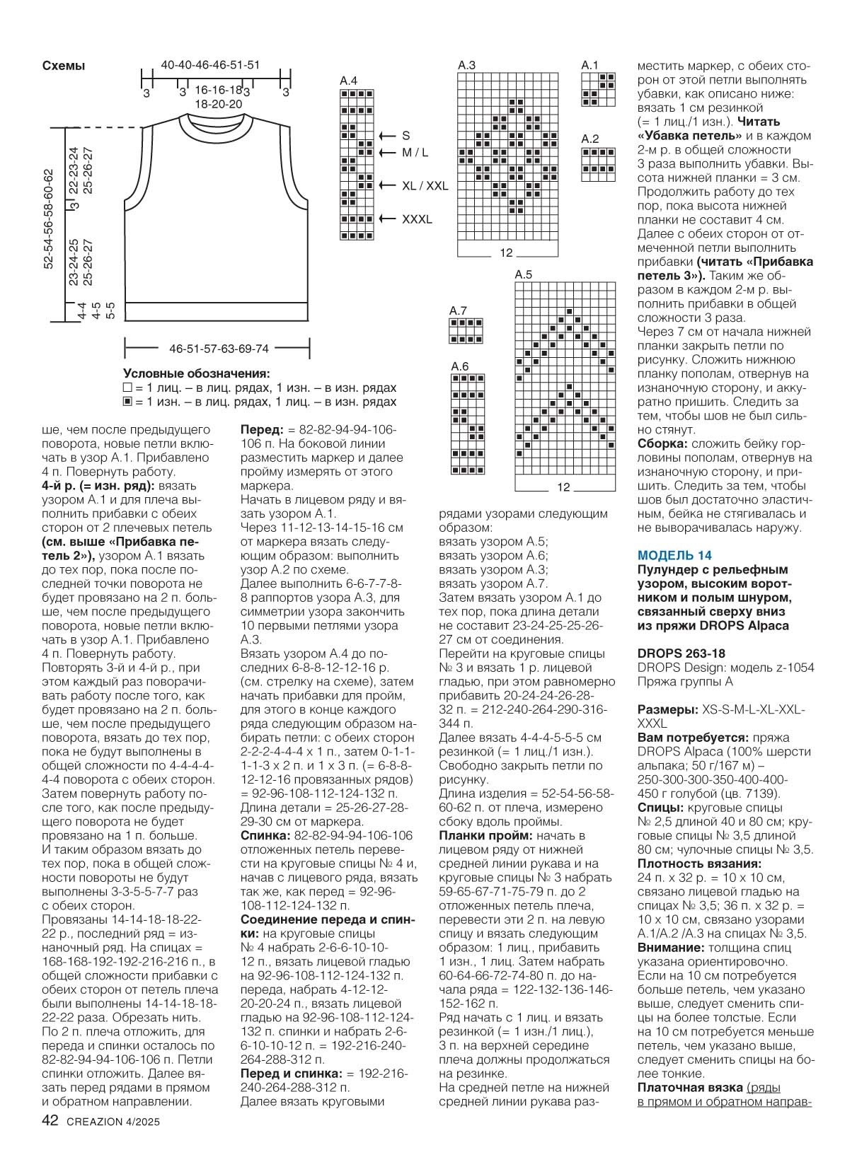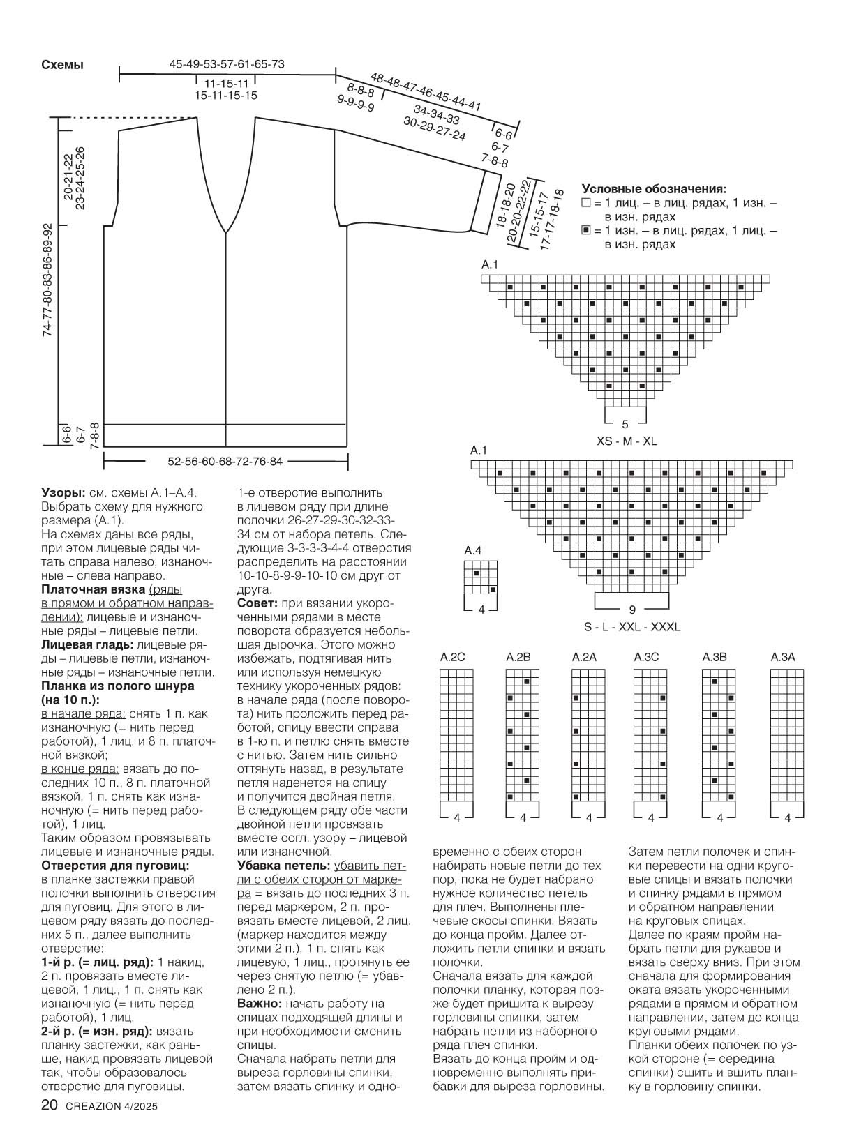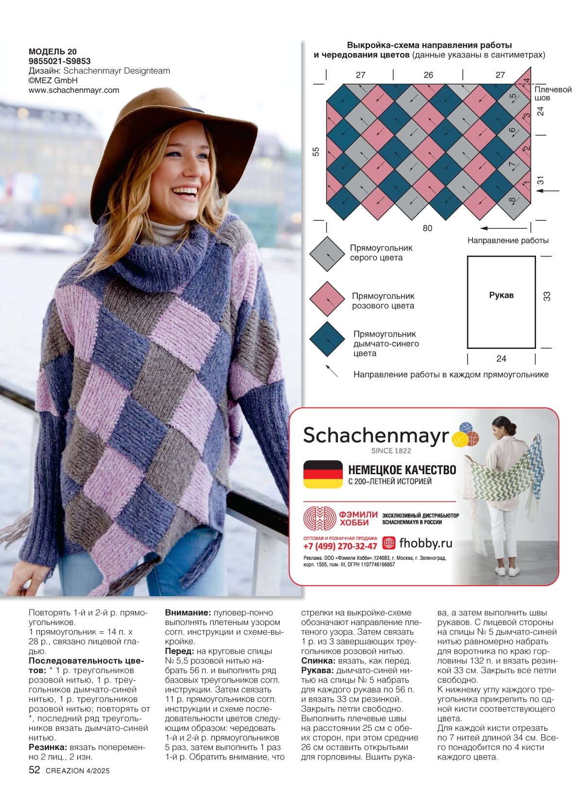 Журнал по вязанию предлагает практичные и одновременно креативные модели европейских дизайнеров. В номере коллекция трикотажа нового сезона, в которой успешно сочетаются базовые и оригинальные модели, связанные на спицах или крючком. Привлекательные детали, а также разнообразные узоры - жаккардовые, ажурные, рельефные - придутся по вкусу самым искушенным любителям вязания.