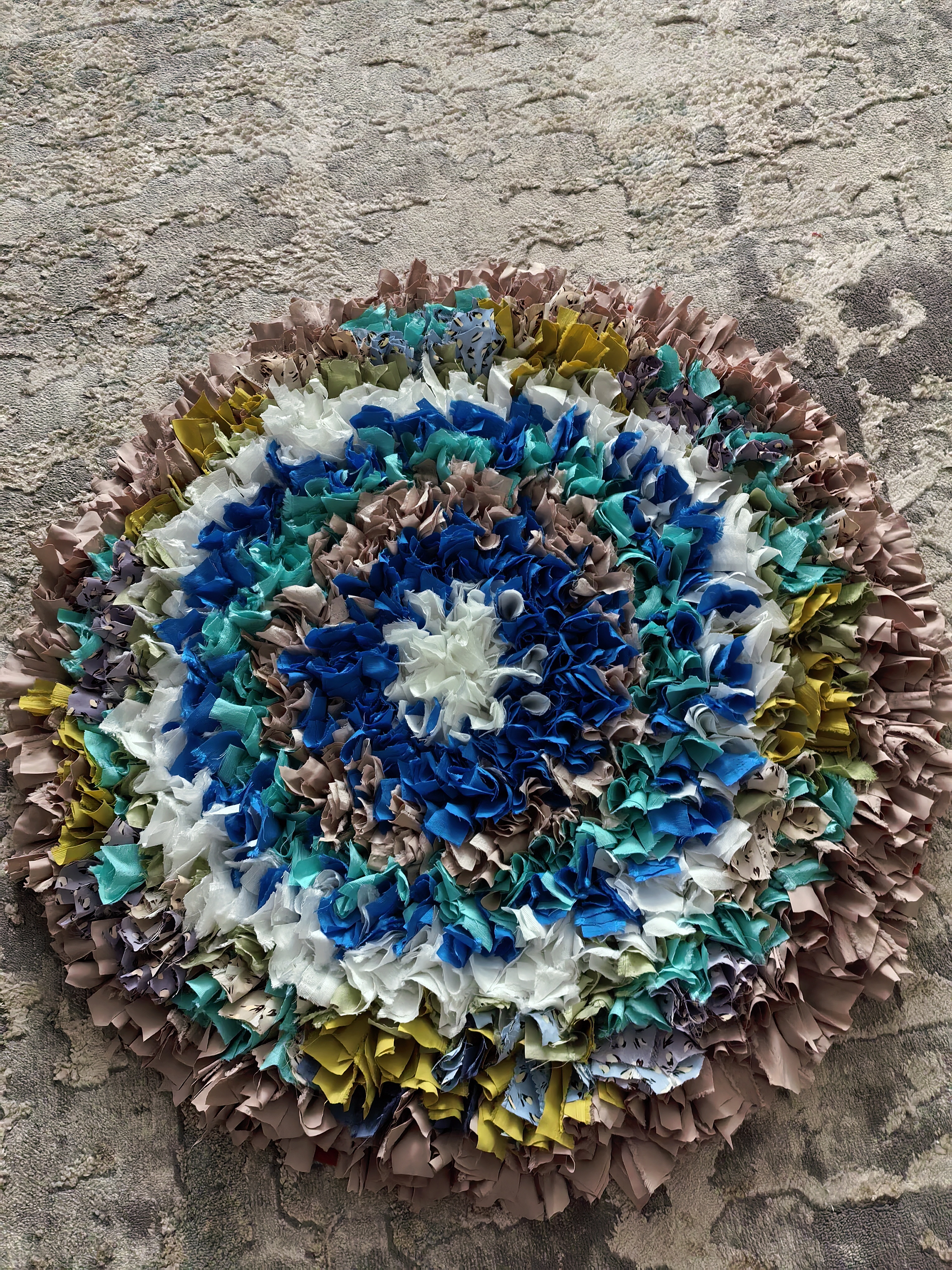 Здравствуйте, любители рукоделия! Начала шить новое одеяло и шила простенькие костюмы для танцевальной детской группы, поэтому не появлялись у меня новые изделия. Сейчас перерыв с одеялом так как жду ткань. Сшила коврик ( один из подарков мужу на юбилей) под ноги возле кресла, ну и подушку на диван.