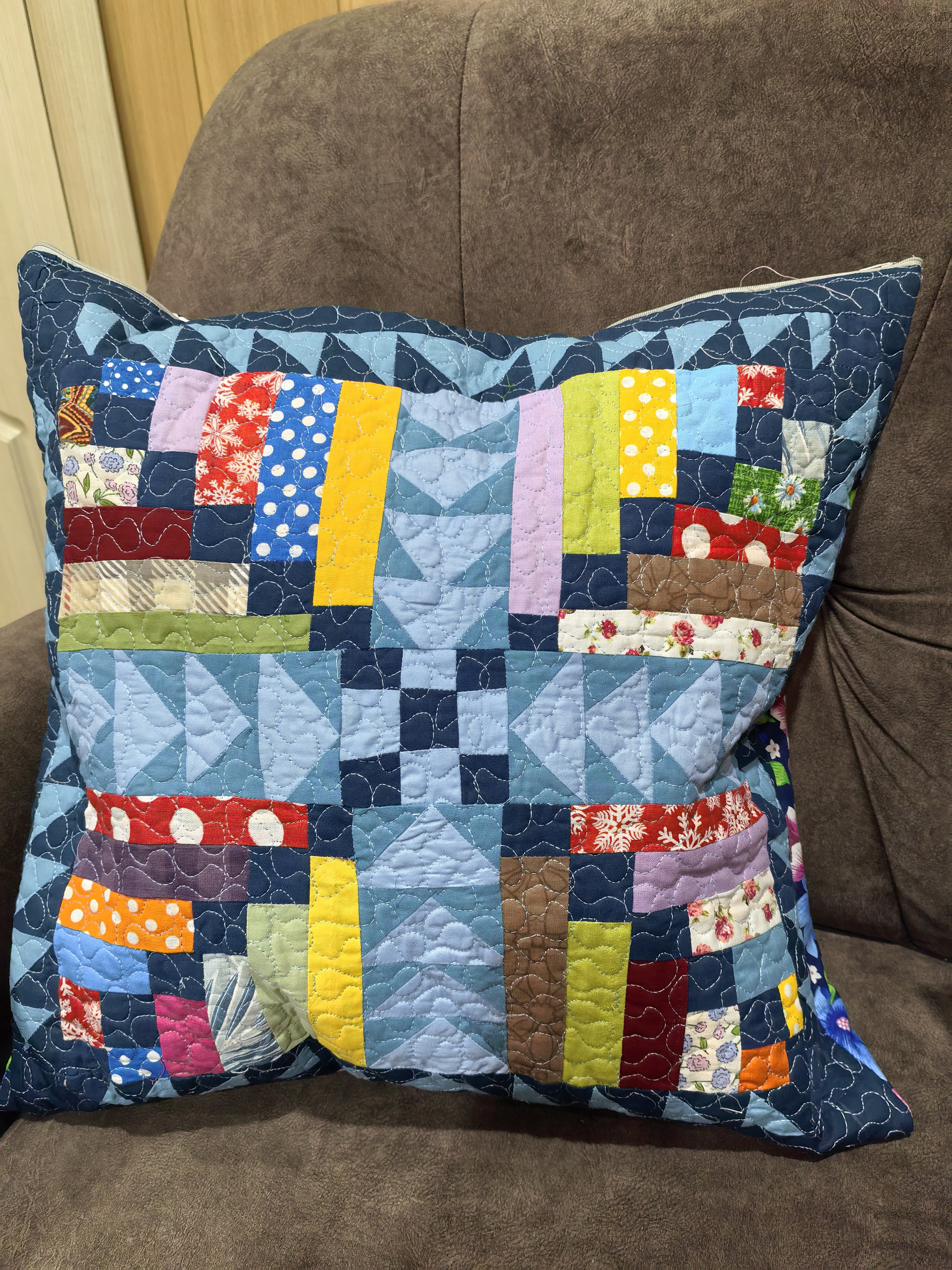Подушка хороша! Вроде и цветов разных много и рисунков тоже, но, мне показалось, что все удачно сочетается.
