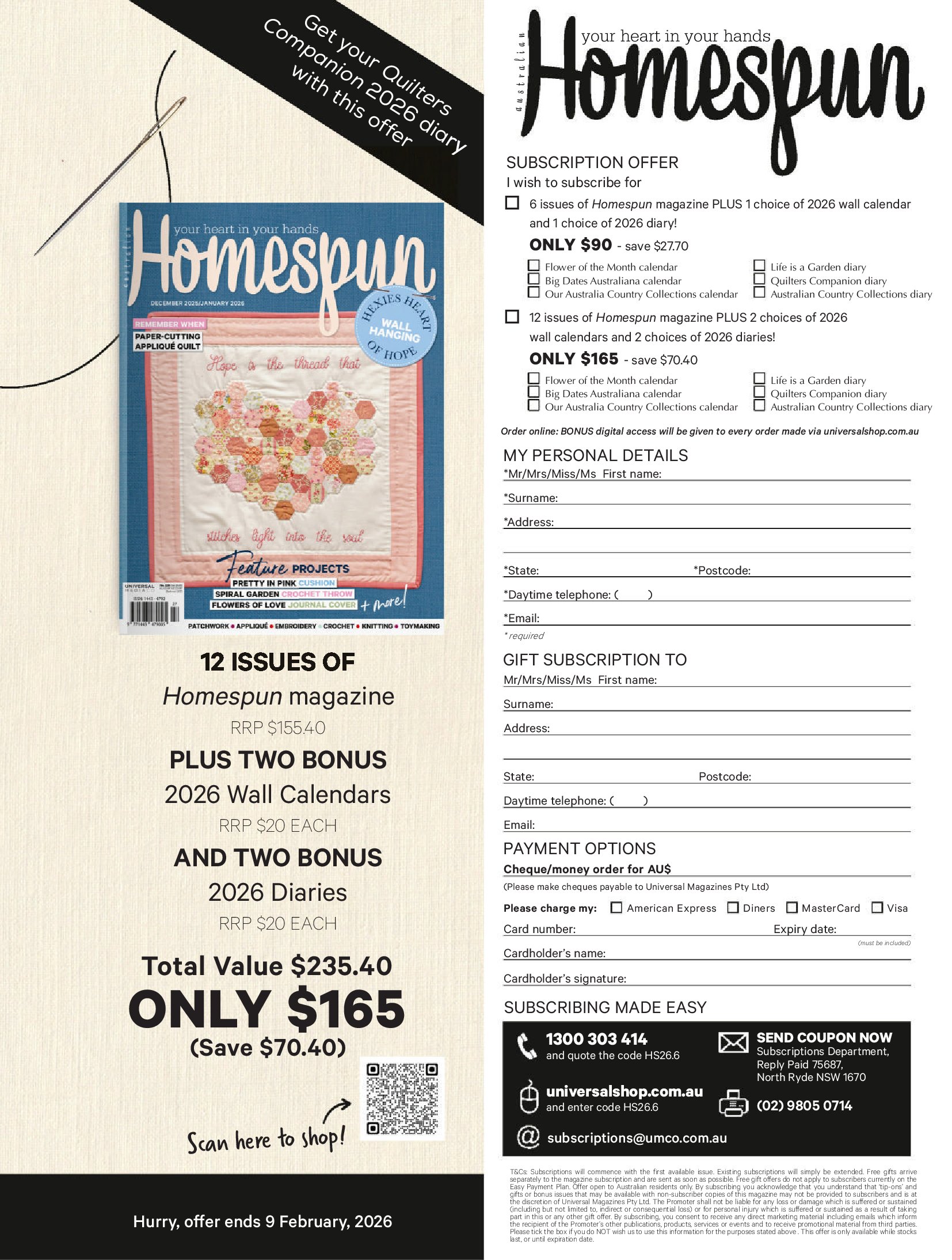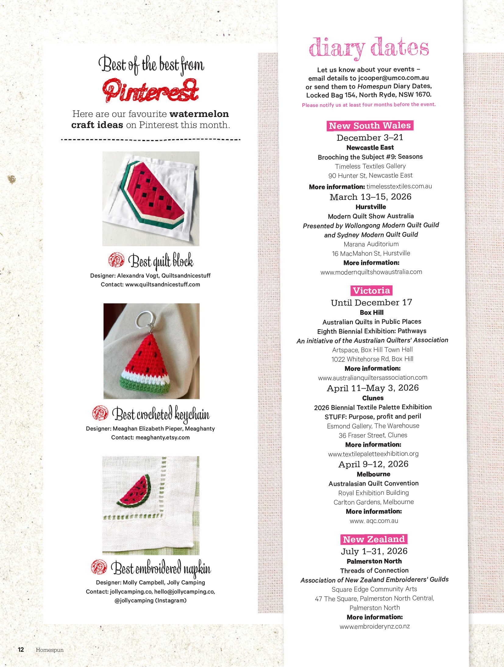 Коллекция проектов для рукодельниц в журнале «Australian Homespun №228 2025»