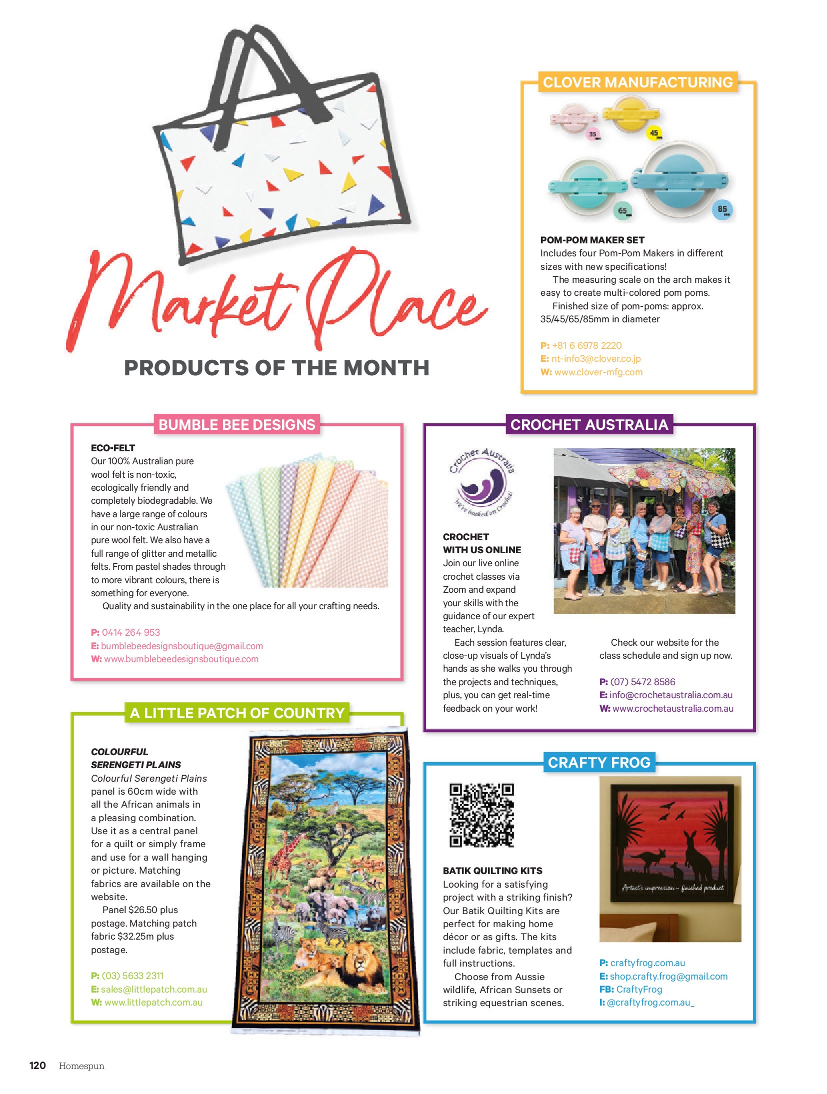 Журнал из Австралии посвящен рукоделию. Новый выпуск заполнен огромным количеством проектов увлеченных мастеров и дизайнеров со всей Австралии и мира. Творчески сочетая темы, стили и техники, мы каждый месяц дарим вам потрясающее вдохновение для пэчворка, аппликаций, вышивки, вязания крючком, спицами и игрушек.