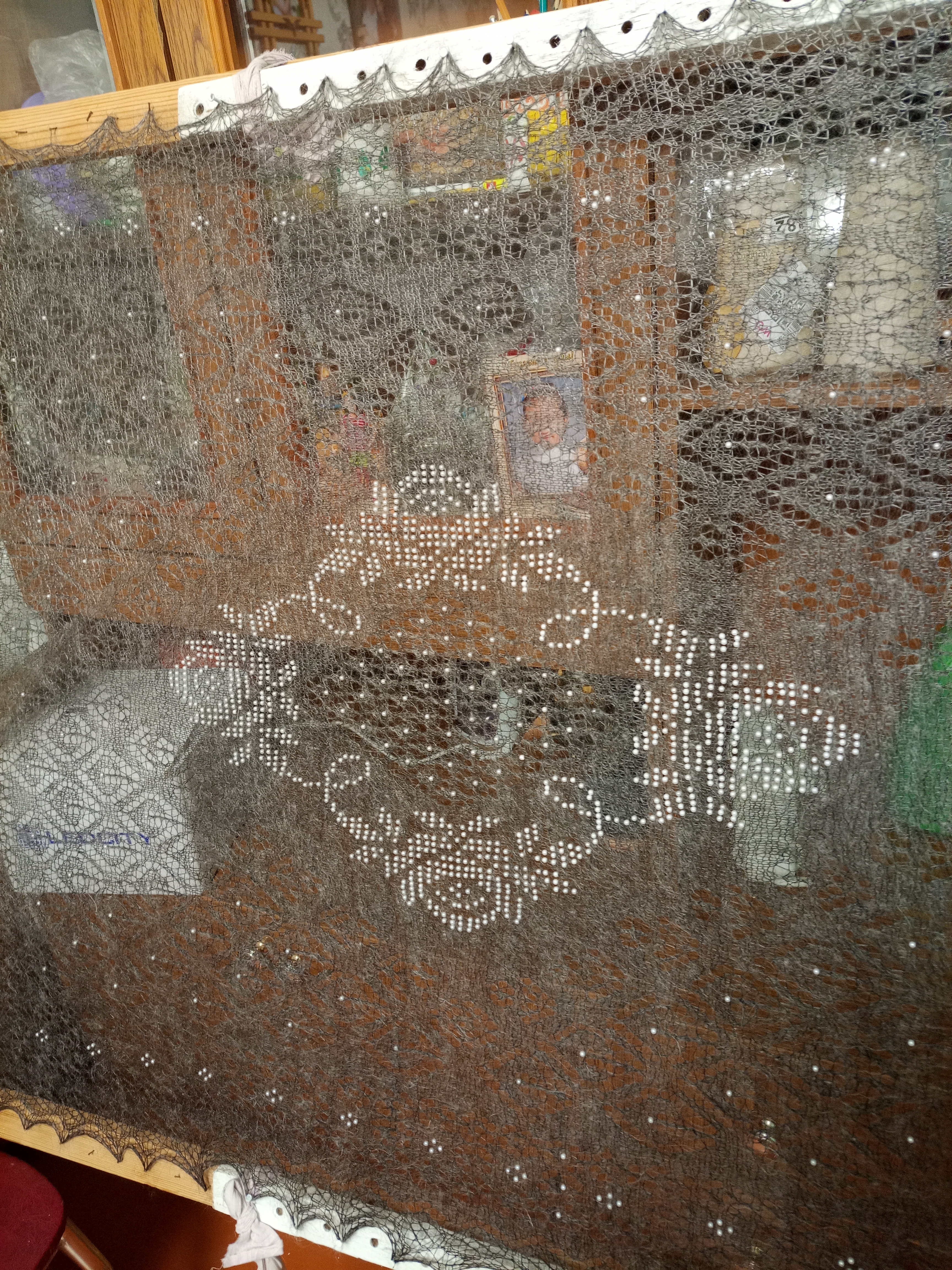 пуховый падълантин, размер 100/230, мягкий, теплый, цветочные мотивы вывязаны перламутровыми бусинами номер 4, в наличии, цена 20тыс.