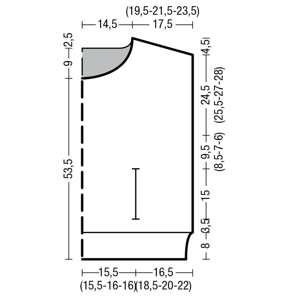 Модель с цельновязаными короткими рукавами и широким воротником гольф позволяет продемонстрировать надетую вниз блузку, водолазку или тонкий джемпер.