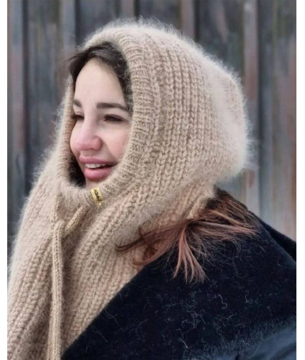 Этот уютный капюшон-шарф, связанный спицами, станет вашим любимым аксессуаром в холодное время года. Его мягкая текстура и теплая пряжа обеспечат комфорт и защиту от ветра. Обратите внимание на стильные завязки и плотную вязку, которые придают изделию особый шарм. Вы уже готовы сделать его частью своего гардероба?