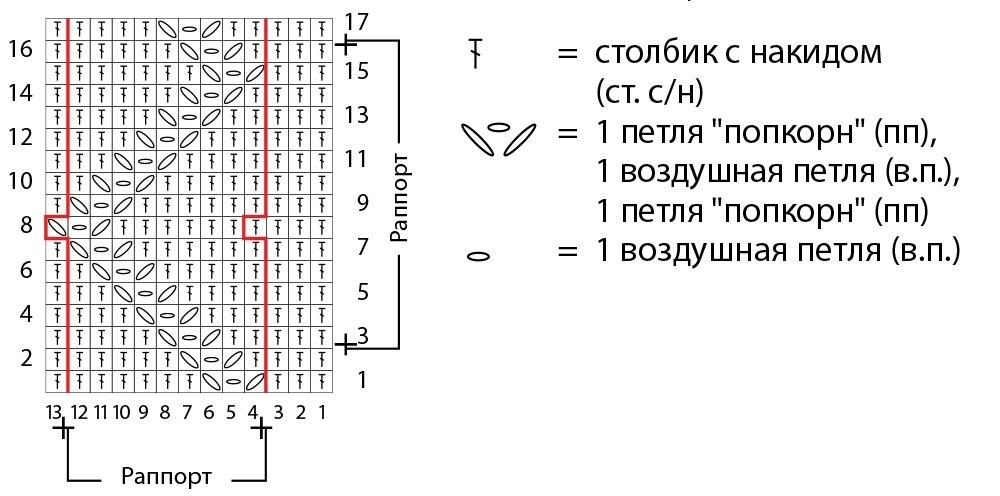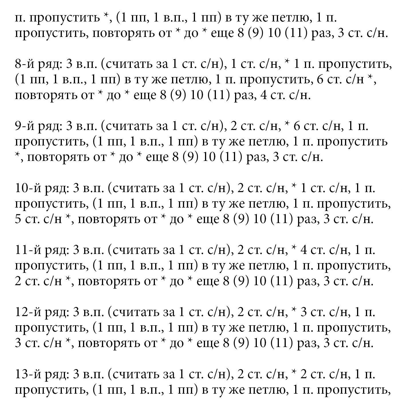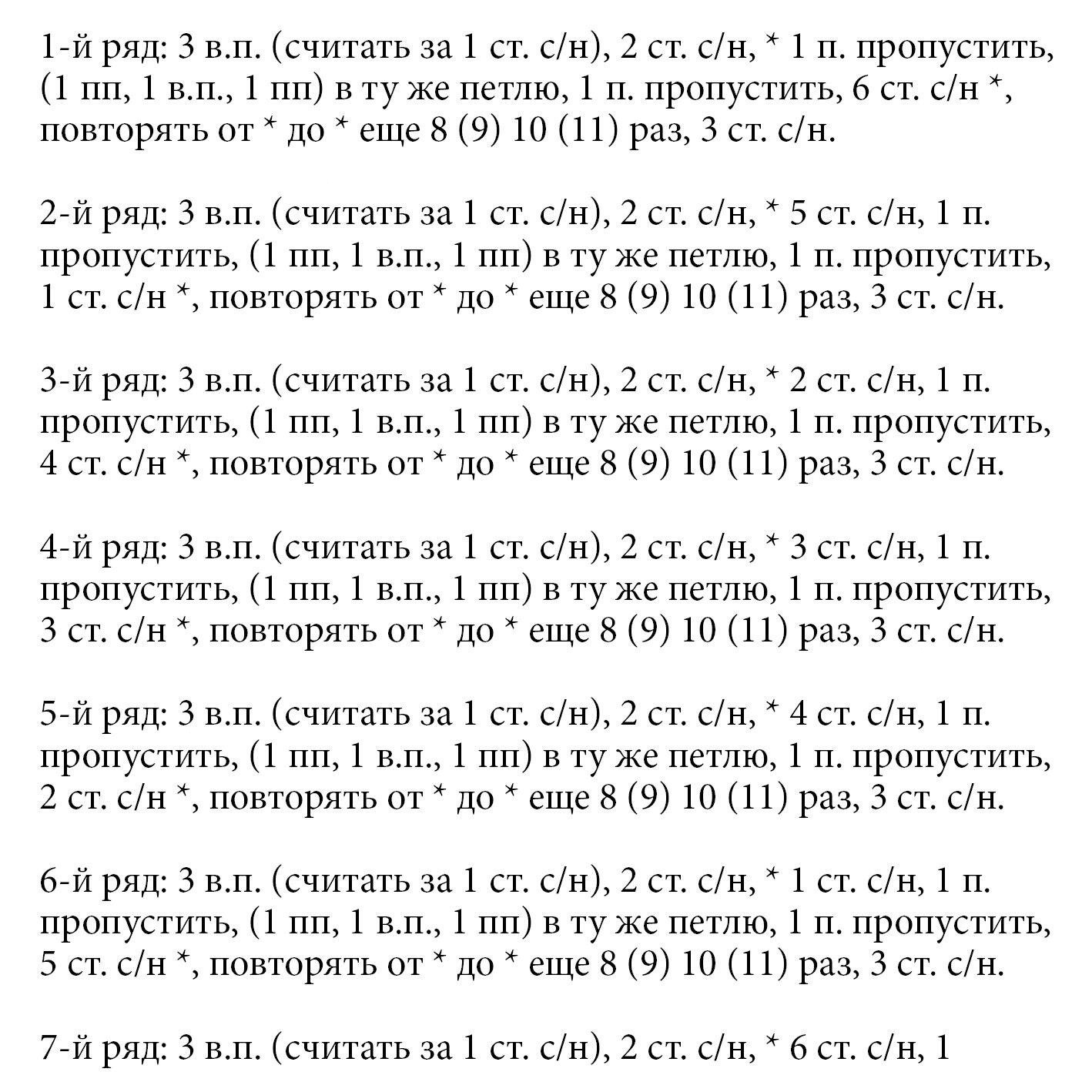 Далее в тексте пп: (сделать накид, ввести крючок в петлю и протянуть рабочую нить) 4 раза. Протянуть нить через все петли на крючке и замкнуть ряд 1 в.п.