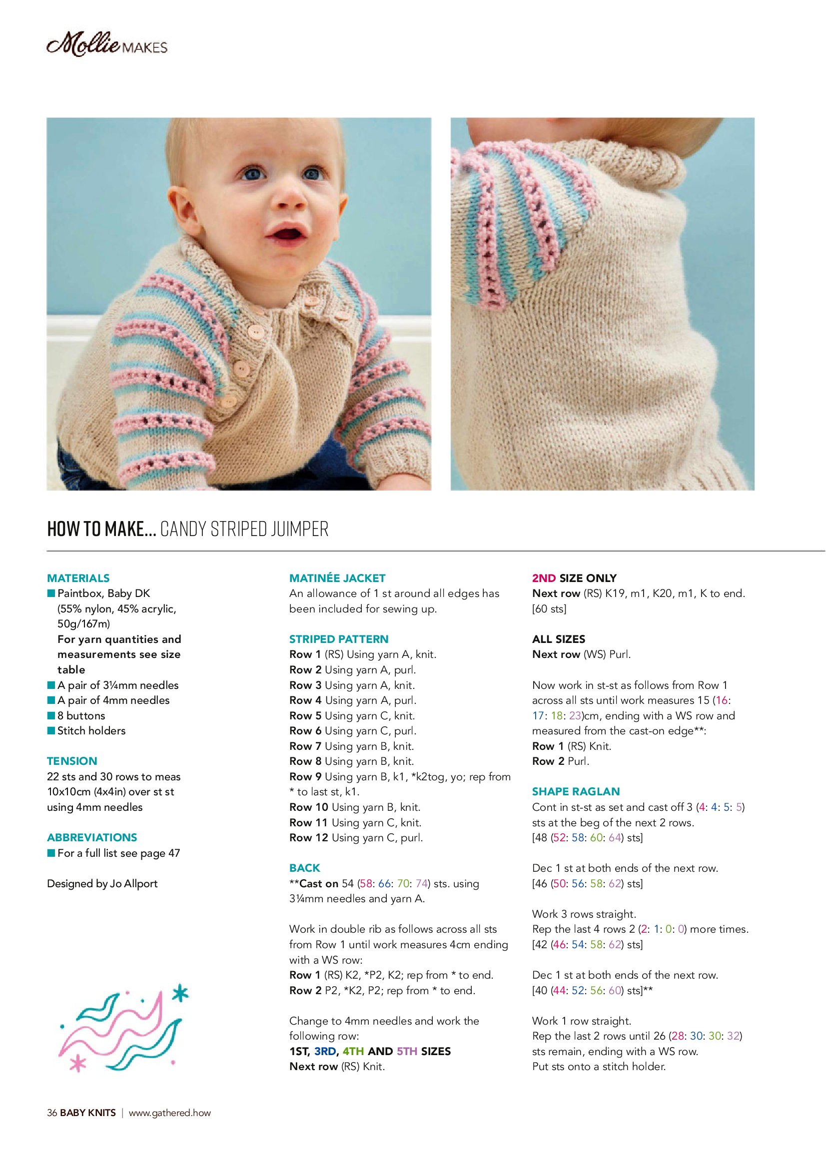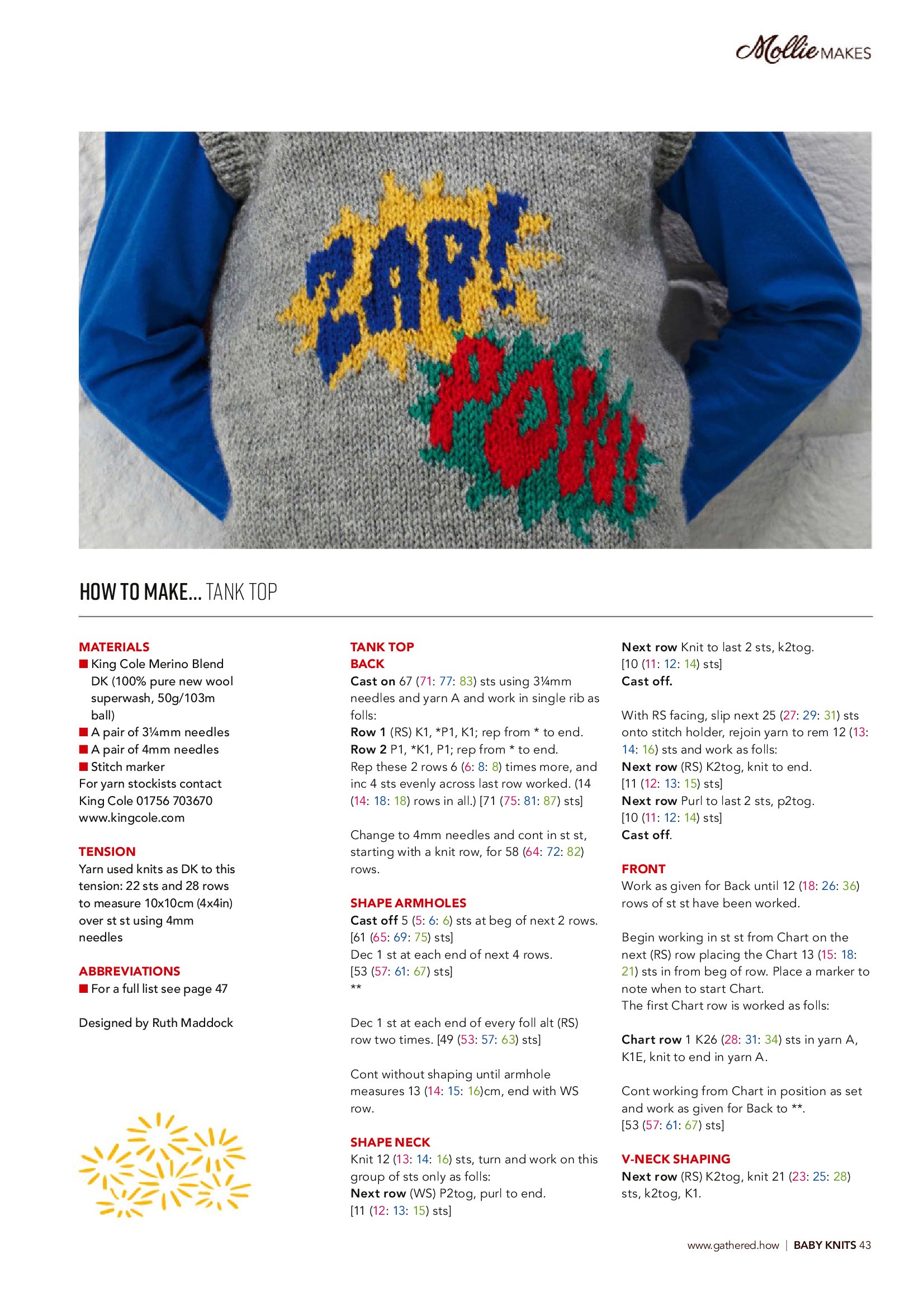 Популярный журнал Mollie Makes представляет новый специальный выпуск по вязанию. Любители вязания спицами найдут в нем новую коллекцию детских изделий для всех возрастов. Замечательные пинетки, тапочки, кофточки, джемпера, костюмы, одеяло, шапочка и варежки.