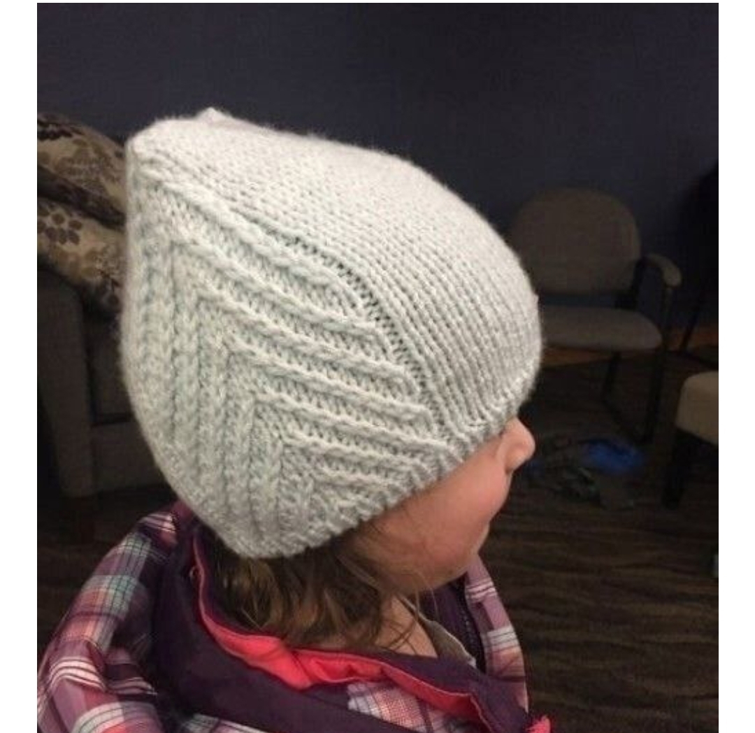 Этот вязаный спицами капюшон отличается уникальным дизайном, создающим иллюзию полного погружения в уют. Особое внимание привлекает диагональная текстура вязки, которая добавляет изделию динамичность и стиль. Шапка удобно облегает голову, создавая впечатление таинственного маскировочного аксессуара.