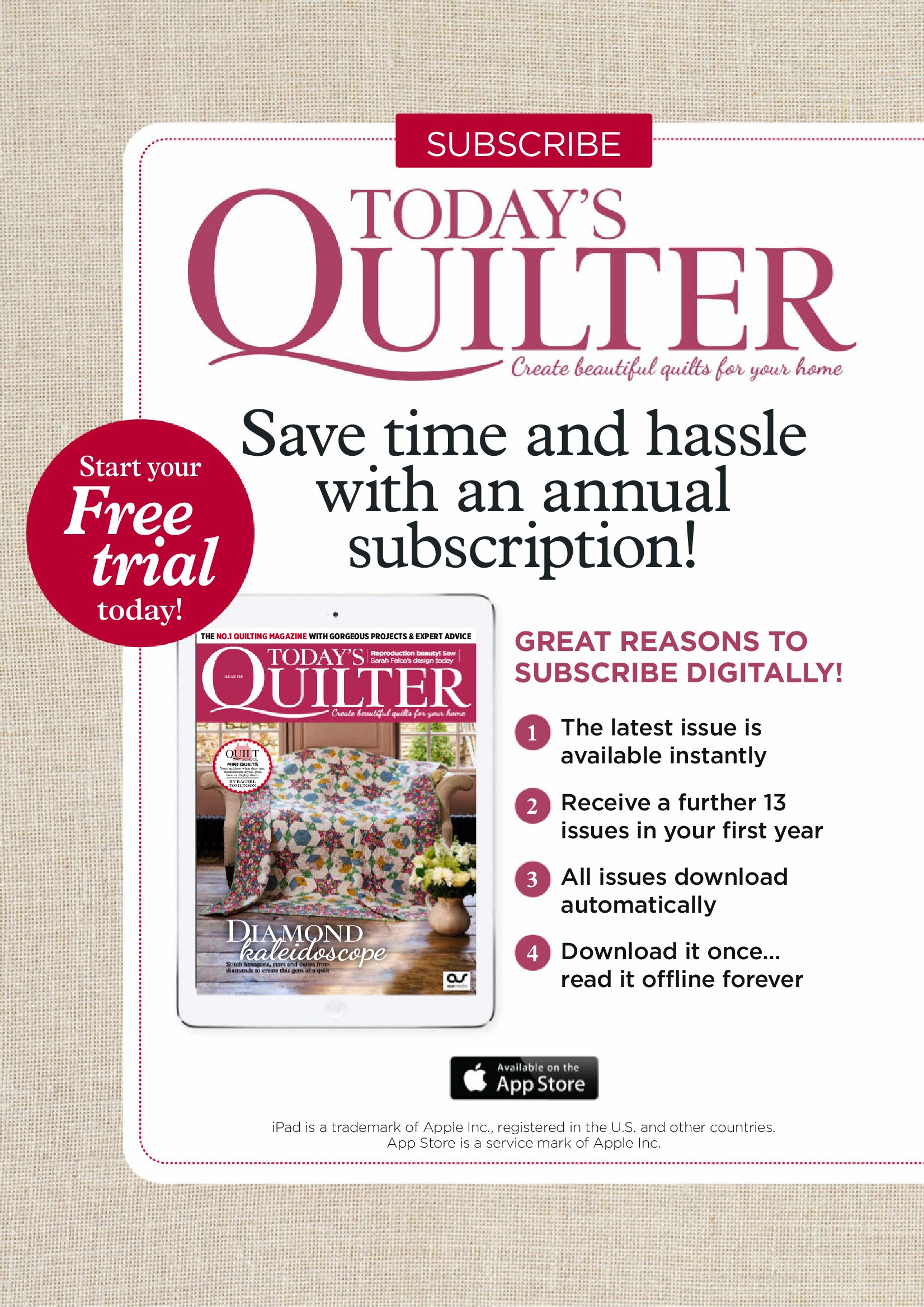 Журнал посвящен квилтингу, пэчворку, лоскутному шитью. Современные проекты, модные тенденции, советы и рекомендации от мастеров квилта.