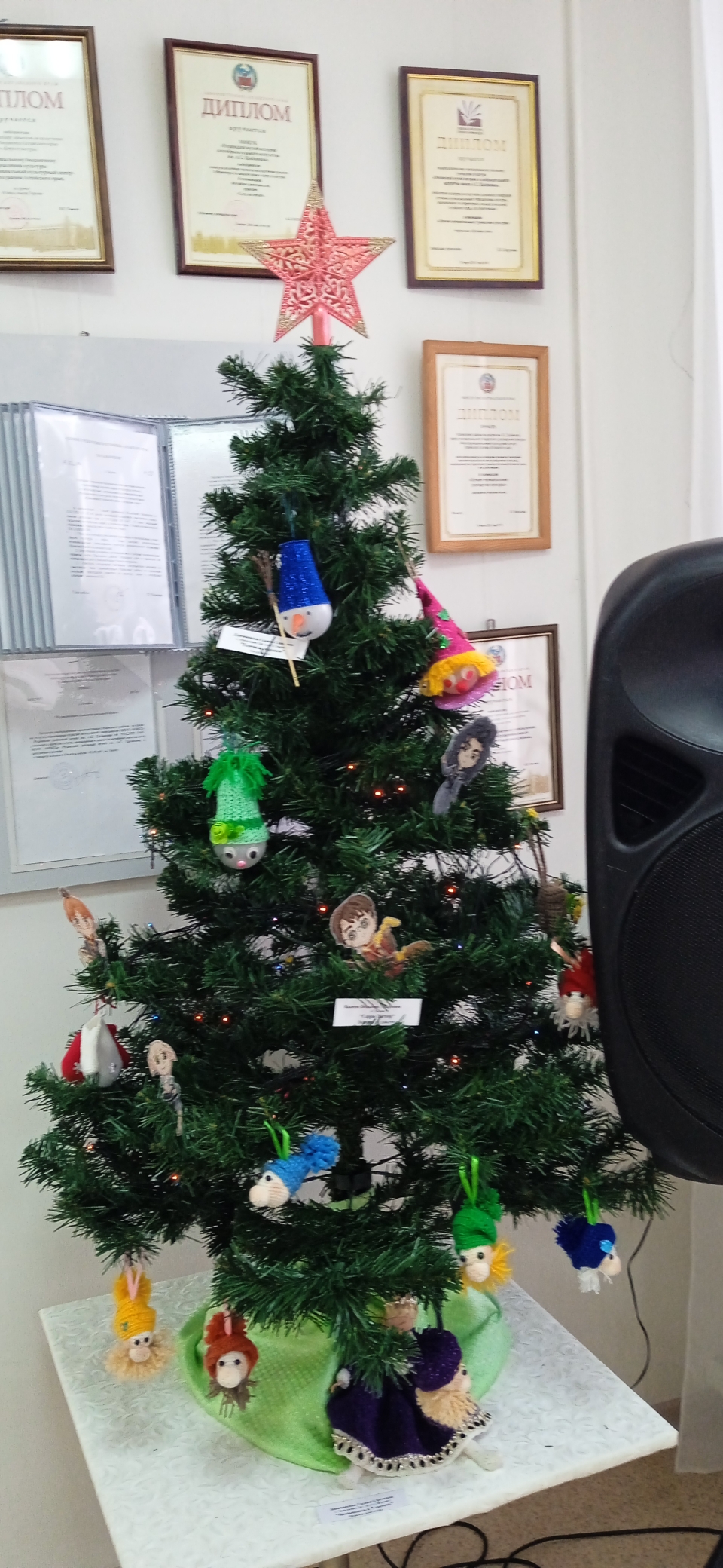 На входе ежегодно наряжают ёлку рукодельными игрушками. В этом году всего две рукодельницы предоставили игрушки, одна из них - Дорожинская Галина Сергеевна из нашего села. Апсайклинг - из лампочек получились забавные мордашки клоунов, снеговиков, колокольчики... Вторая рукодельница предоставила несколько игрушек - вышивка на пластиковой канве. Милые детки получились!