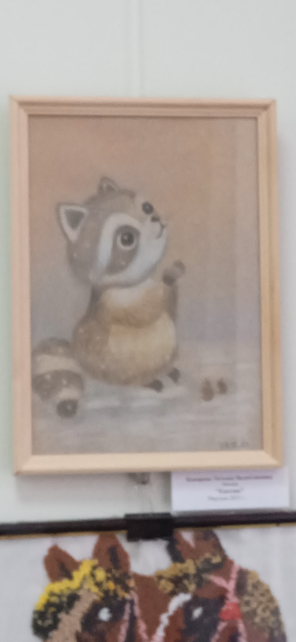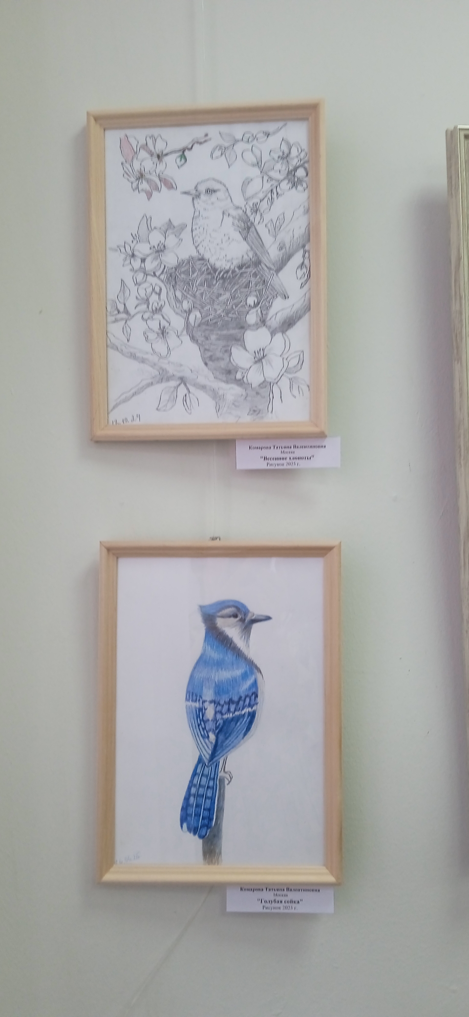 Все желающие могут выставить работы родных и знакомых, которые не проживают на территории района. Пусть простит меня Таня - Татьяна Валентиновна Комарова, но я не удержалась, отвезла её рисунки на выставку.