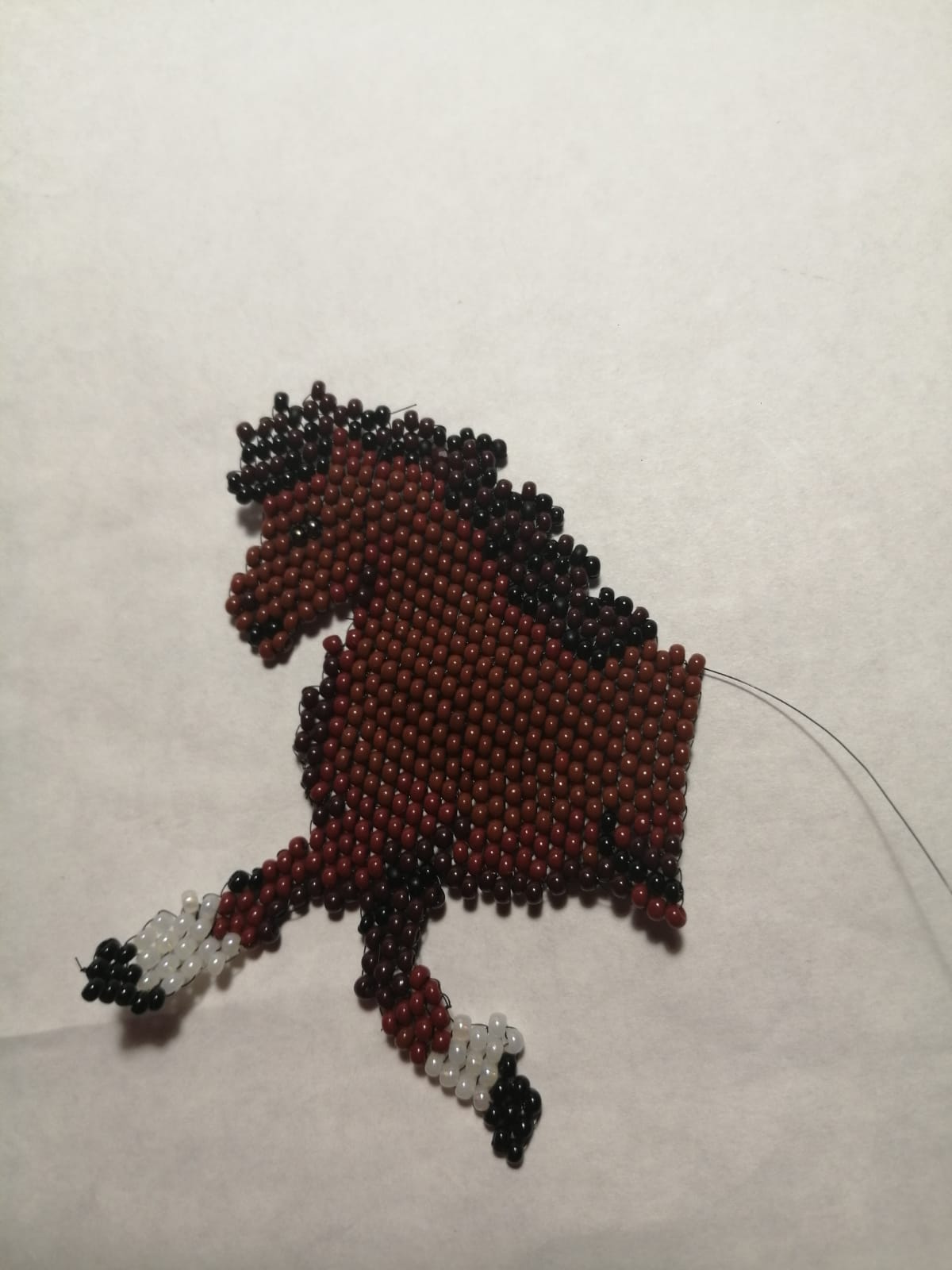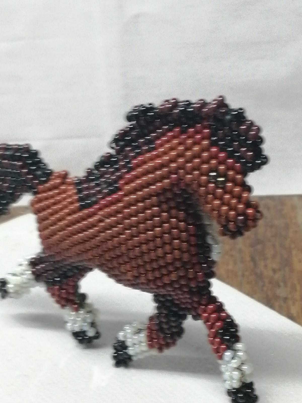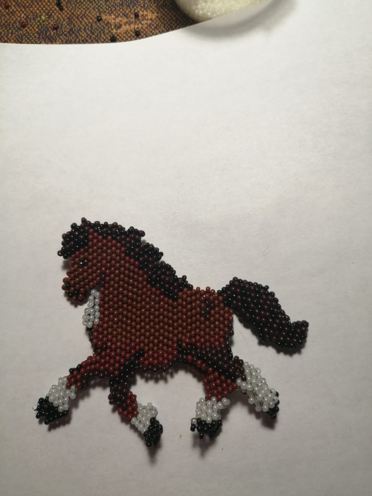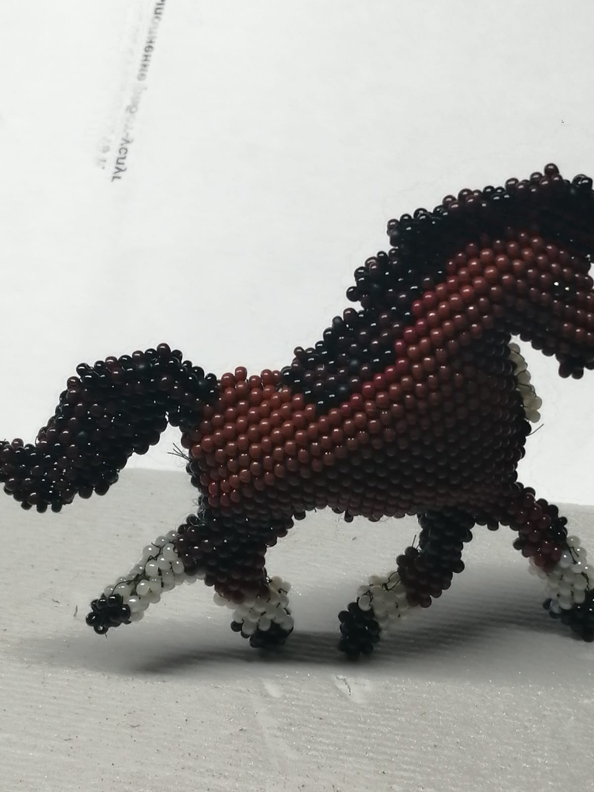 решила поучаствовать в конкурсе со своей лошадкой. выполнена в технике кирпичного плетения.сплетены две части затем соединены.