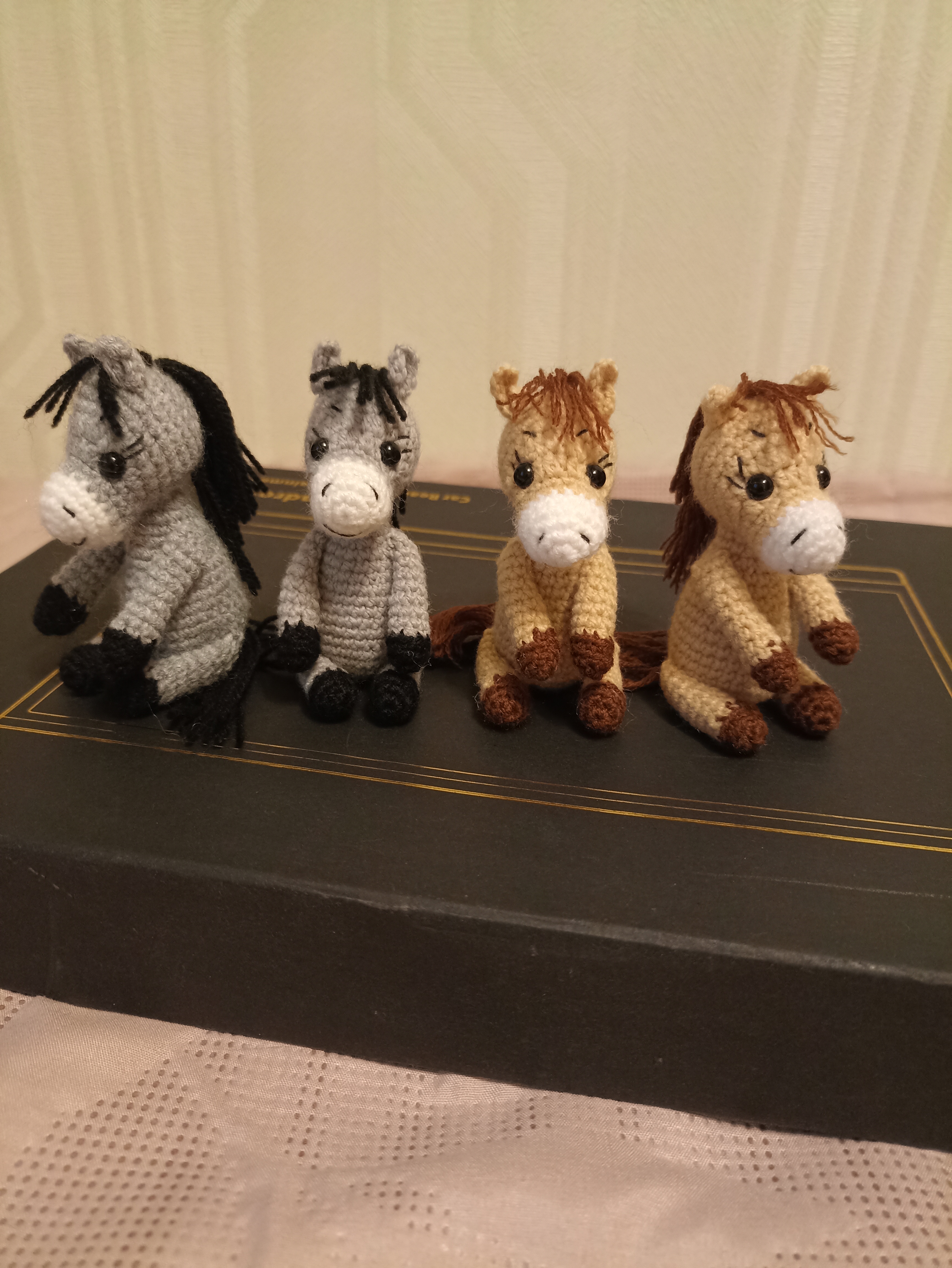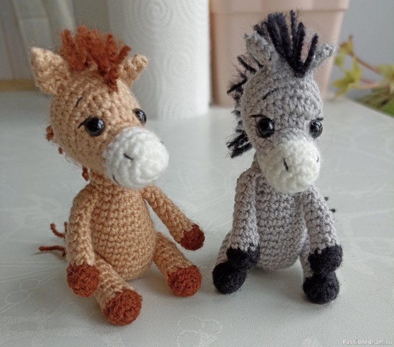 Вот и подходит к концу этот год, декабрь, как обычно, самый загруженный месяц в плане подготовки подарков к наступающему году. Времени как всегда не хватает сделать топик по выполненным работам, но я решила запрыгнуть в последний вагон. Эти лошадки связаны по МК от Ольги Гаркуши, который есть в свободном доступе. Вязала из пряжи Пчёлка крючком 1,6 мм, игрушка получилась высотой около 7 см. Вяжется быстро, отдельные детали сшиваются, может кто захочет связать для себя.
