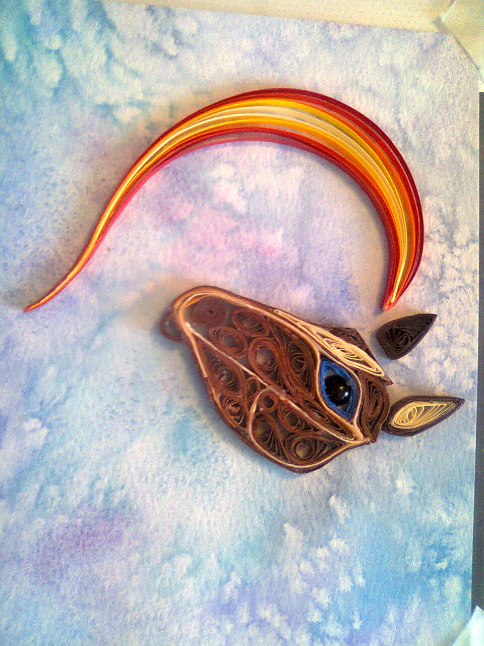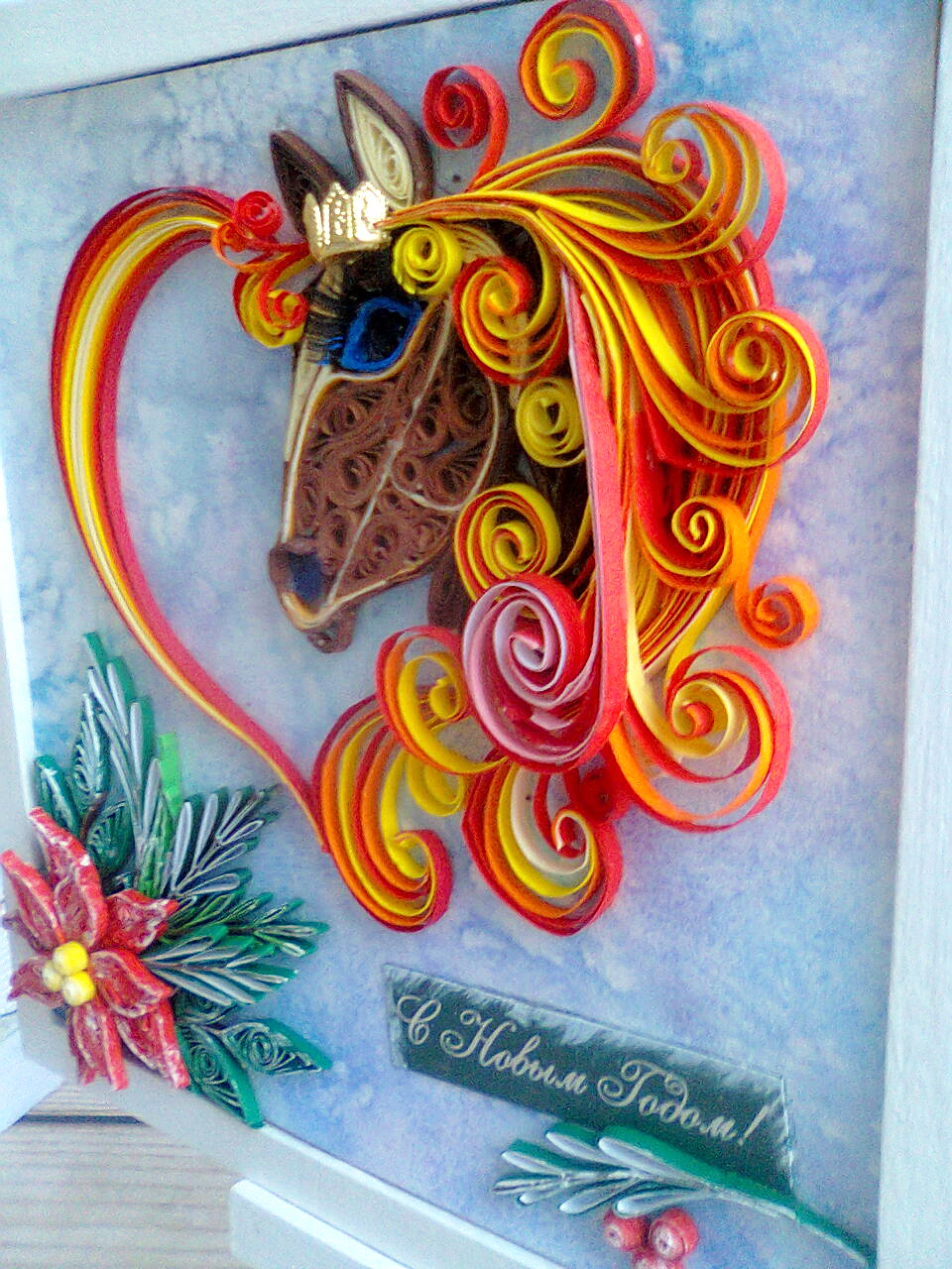 Работа сделана в технике квиллинг из полосок бумаги. Размер работы 17х17см