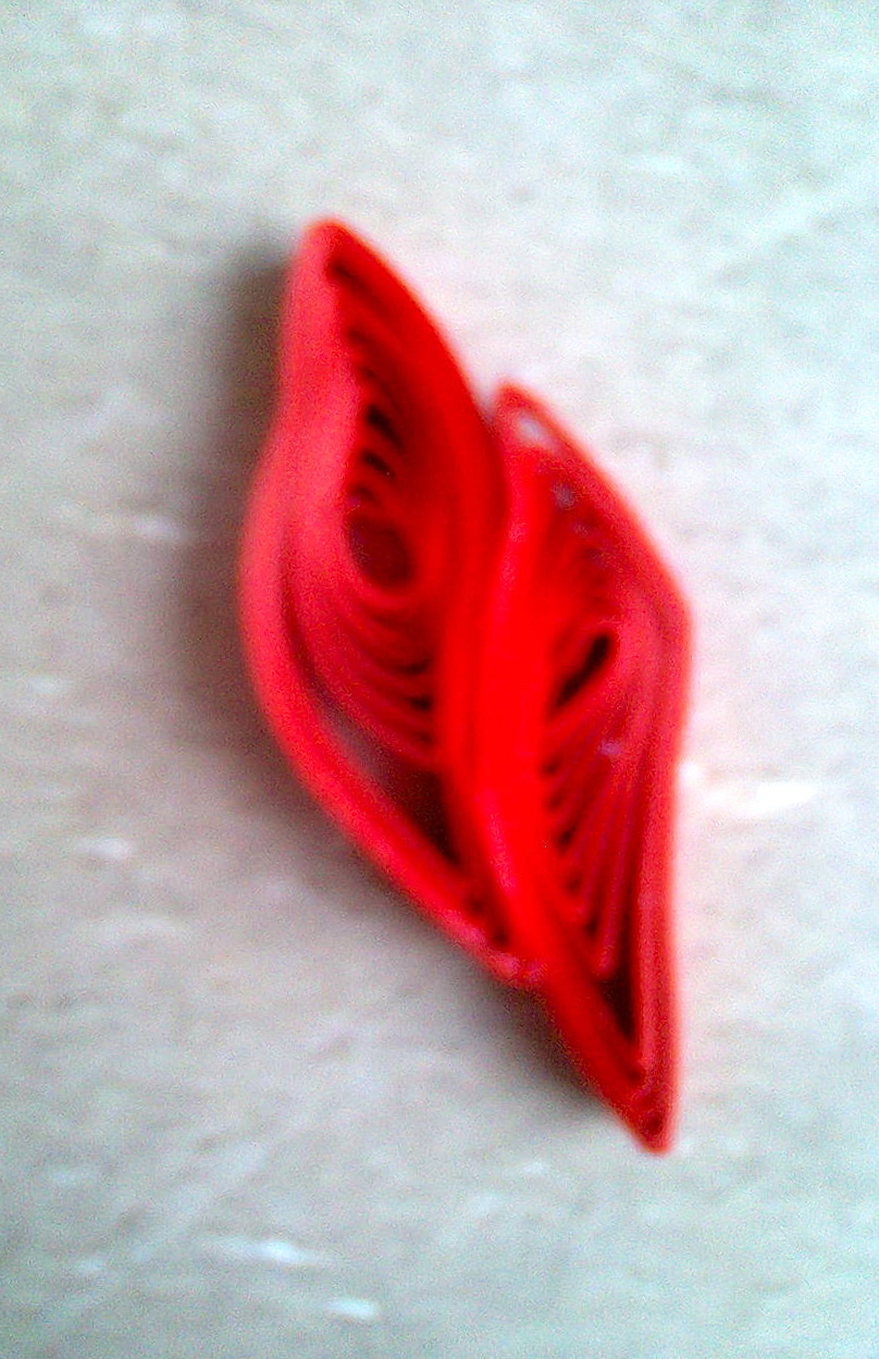 2.Красная полоска – ролл диаметром 15 мм – 10 шт. Сделать S-образный изгиб и склеить по 2 шт со сдвигом (5 лепестков)