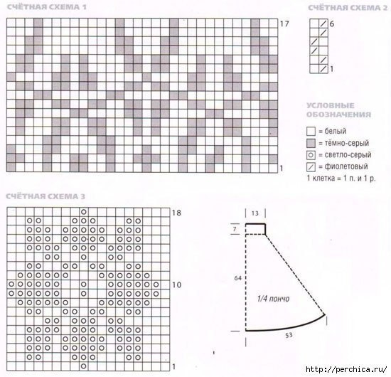 Пончо спицами техникой жаккард. Схемы