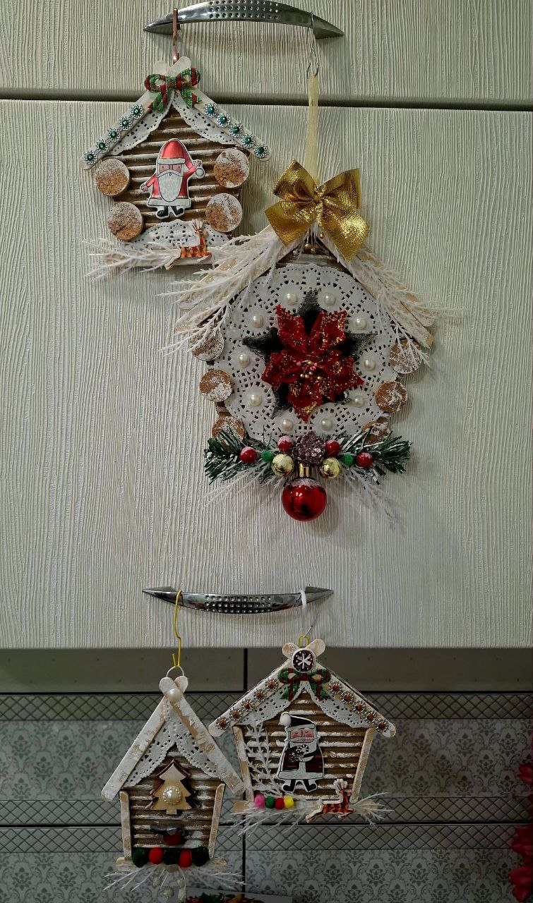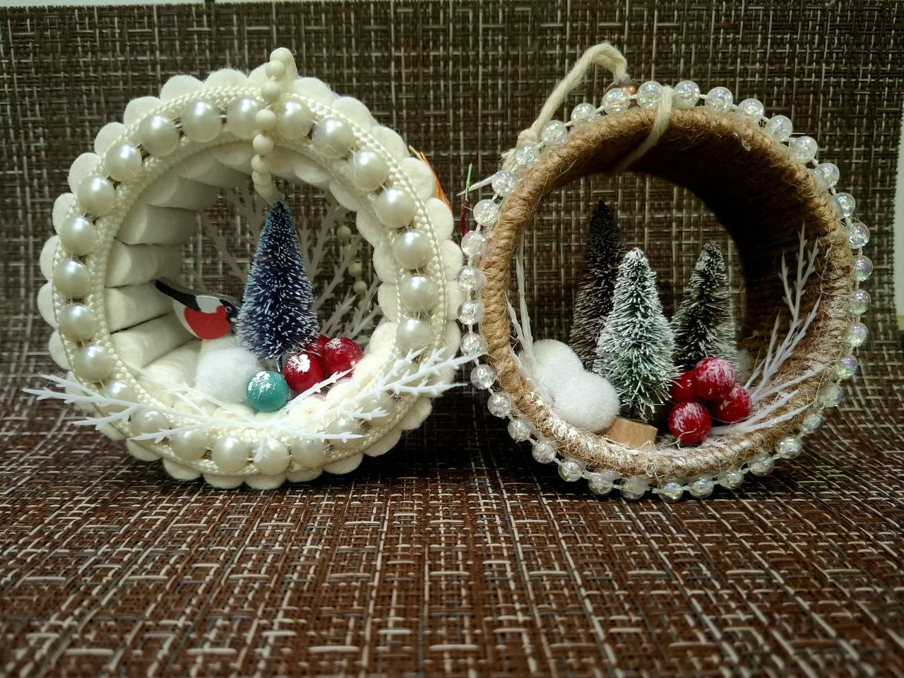 Новогодний декор, подвески из подручных материалов .