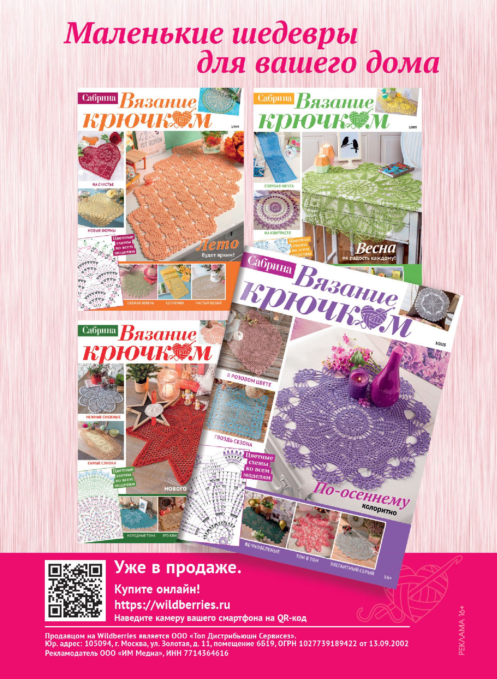 Популярный журнал по рукоделию. В каждом номере журнала собраны уникальные проекты, выполненные в разных техниках - вязание крючком, спицами, вышивка, украшения из бисера, пэчворк и другие.