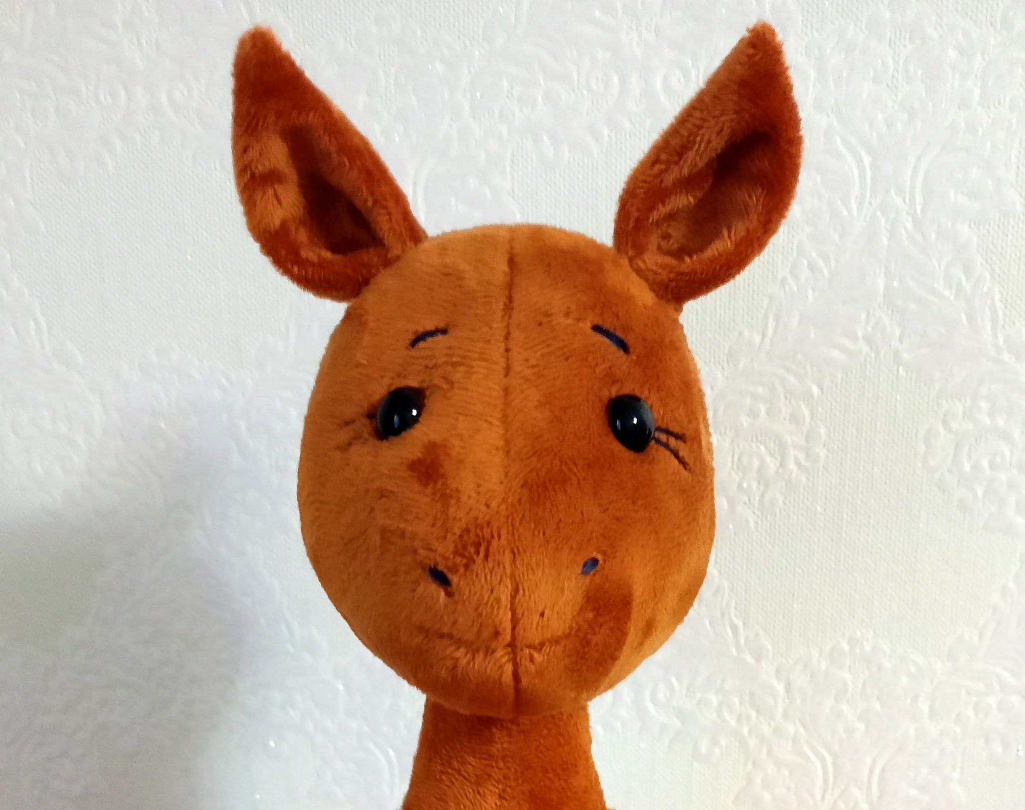 Оформляем мордашку нашего коника: глазки, бровки, ноздри. Пришиваем ушки.