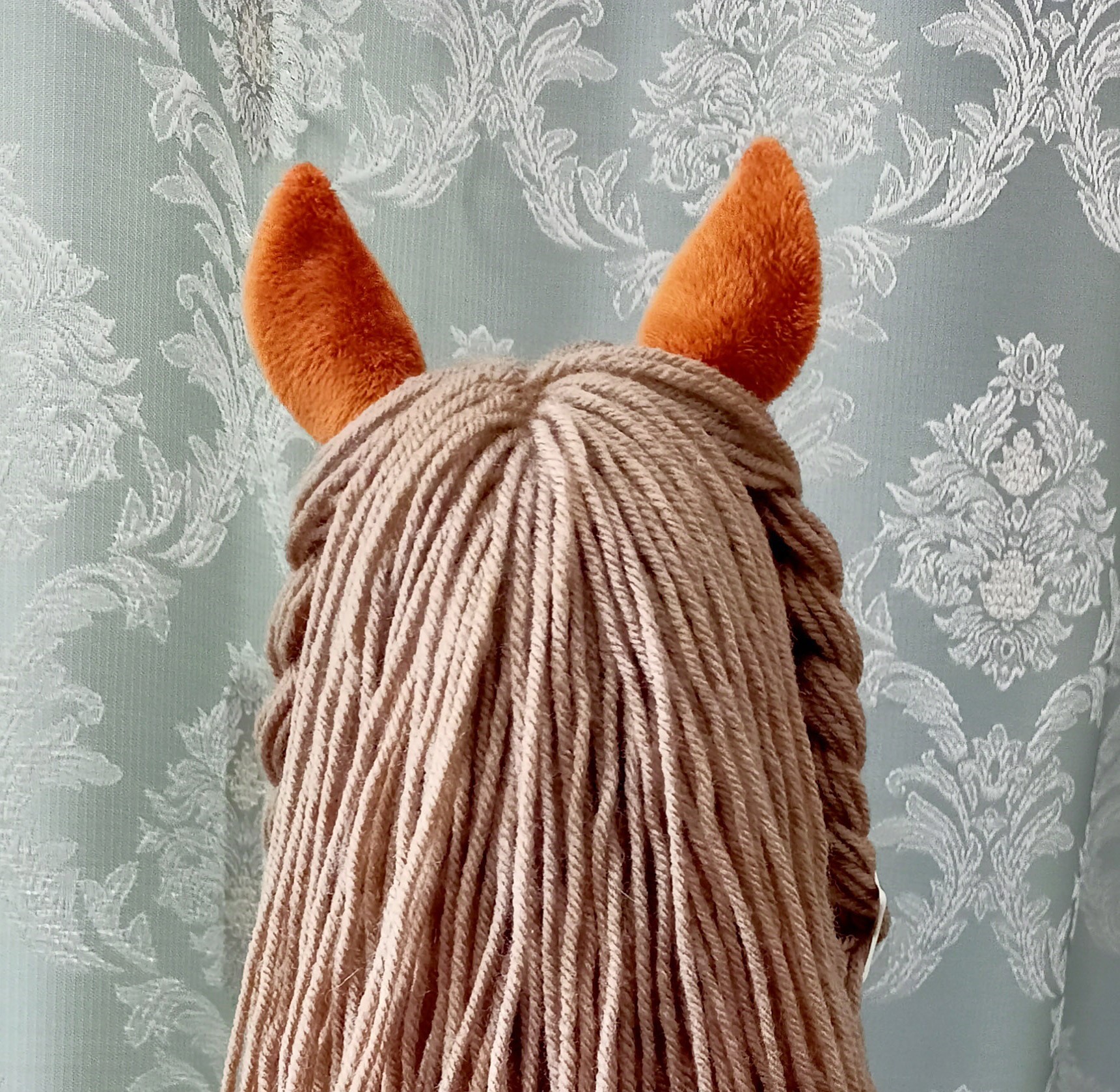 6. Примеряем головушку. Сажаем ее на шею так, чтобы коник смотрел на нас. Закрепляем ее булавками и пришиваем «Потайным швом» два раза по кругу, начиная с затылка.