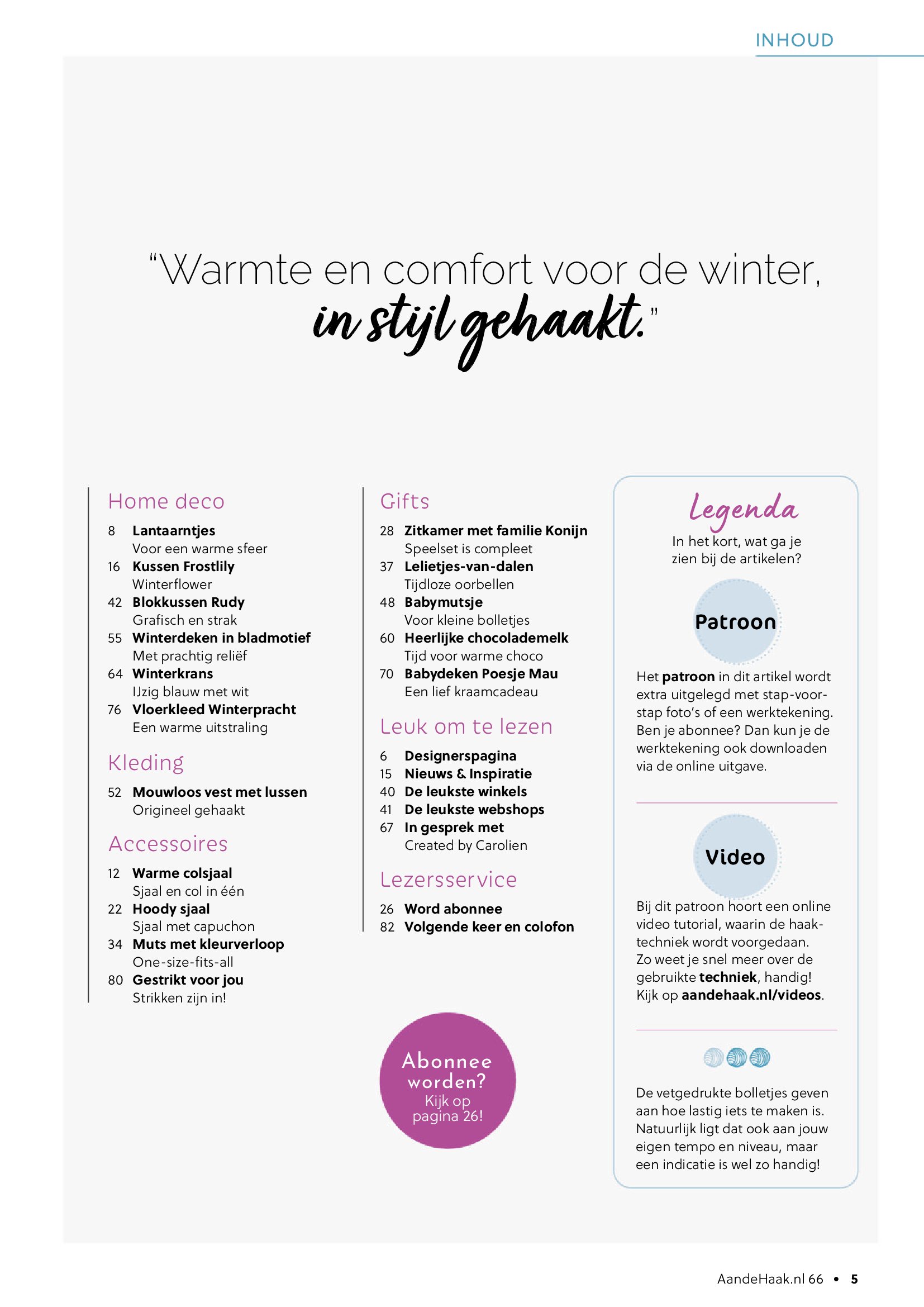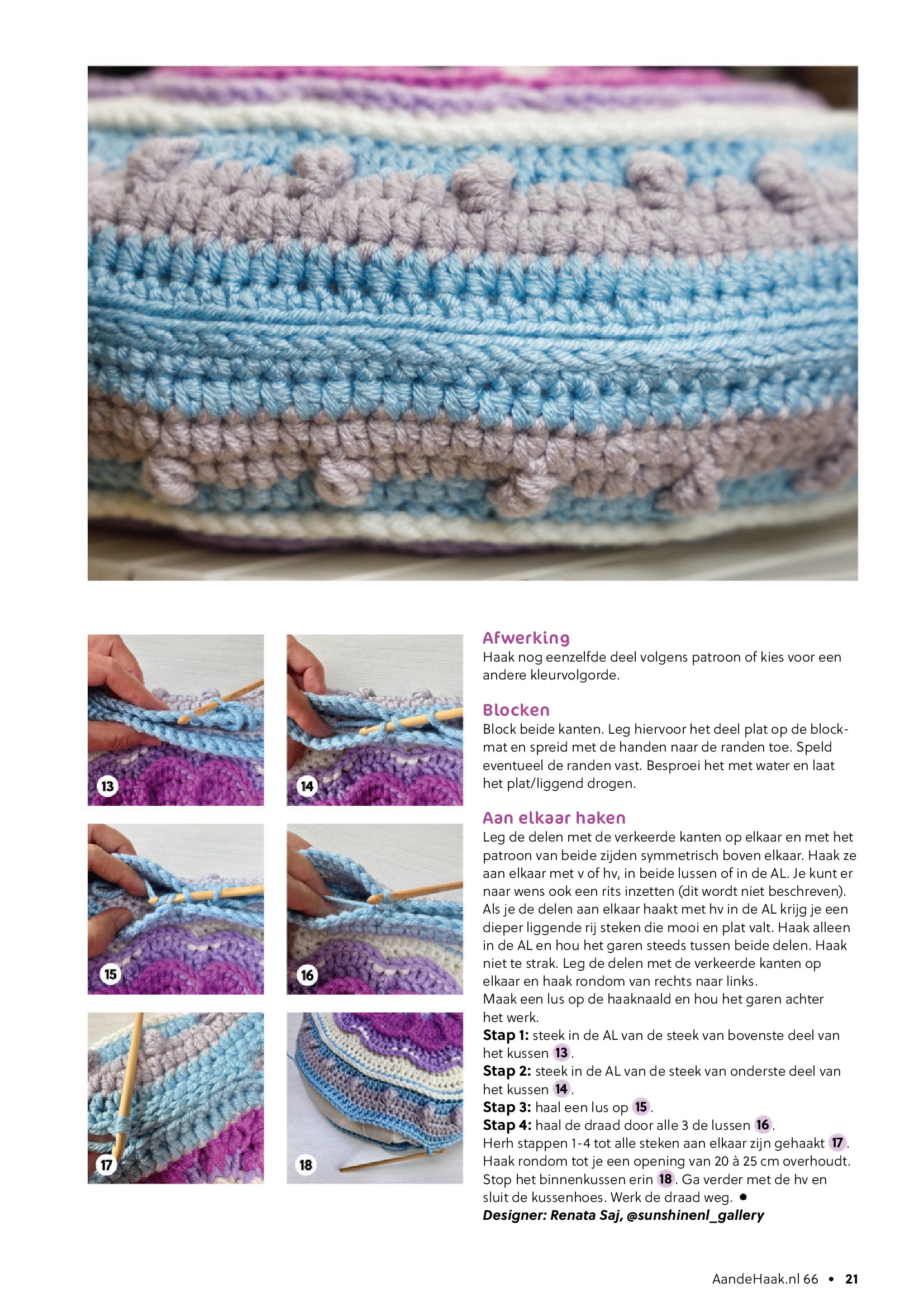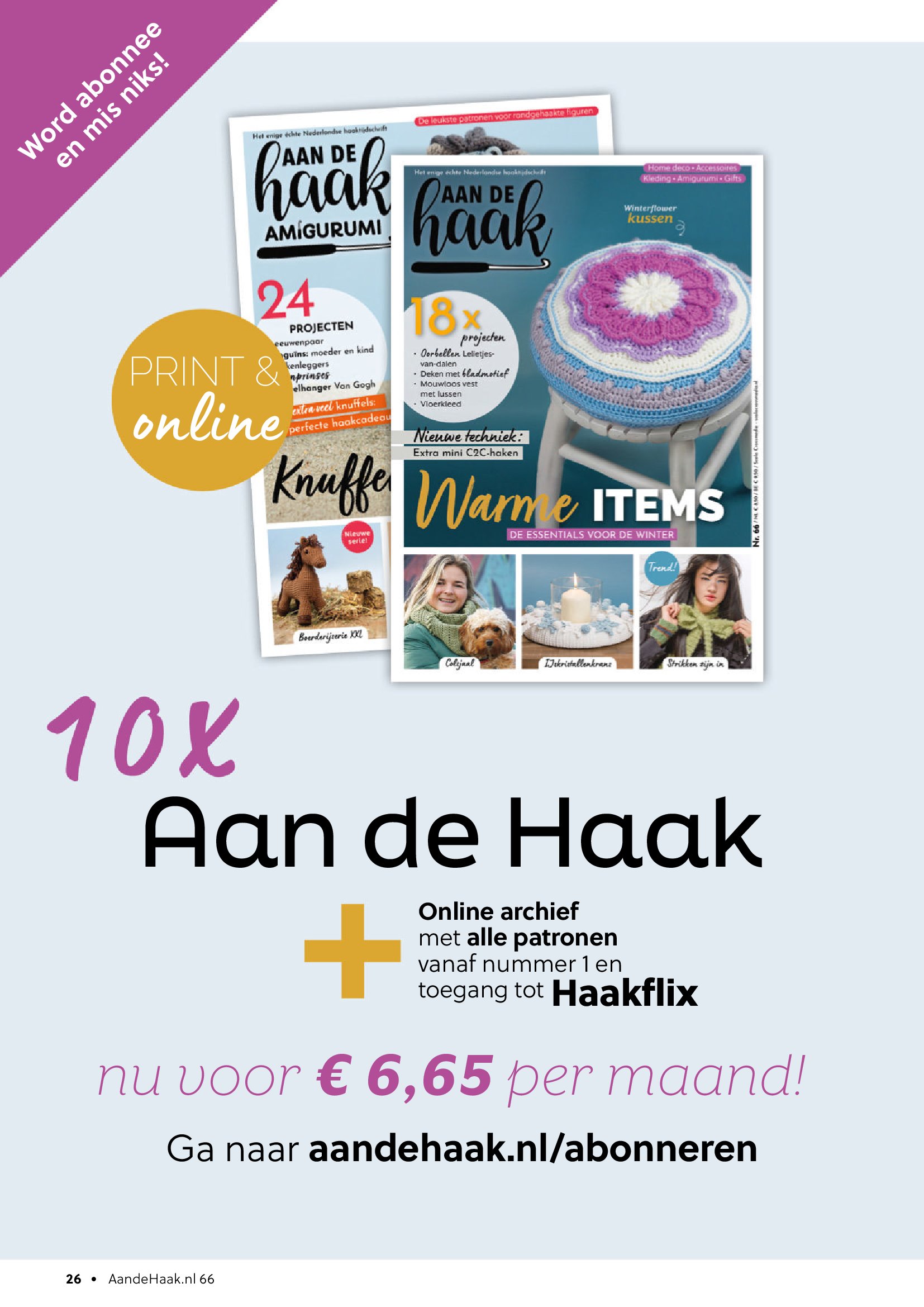 Aan de Haak - журнал о вязании из Нидерландов. Каждый выпуск содержит множество проектов по вязанию спицами и крючком как для самых опытных, так и для начинающих рукодельниц. Хотите ли вы вязать модный шарф или подушку или лучше освоить новую технику? Открывайте журнал и подключайтесь к работе!