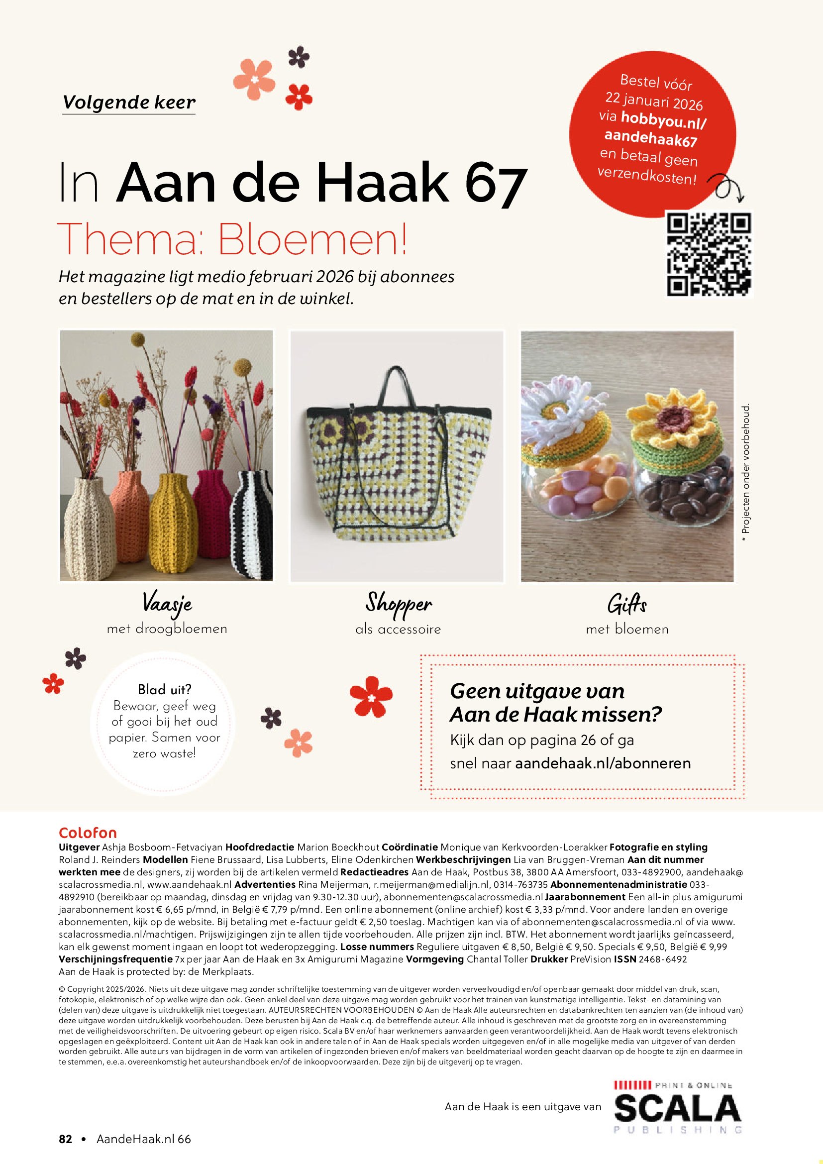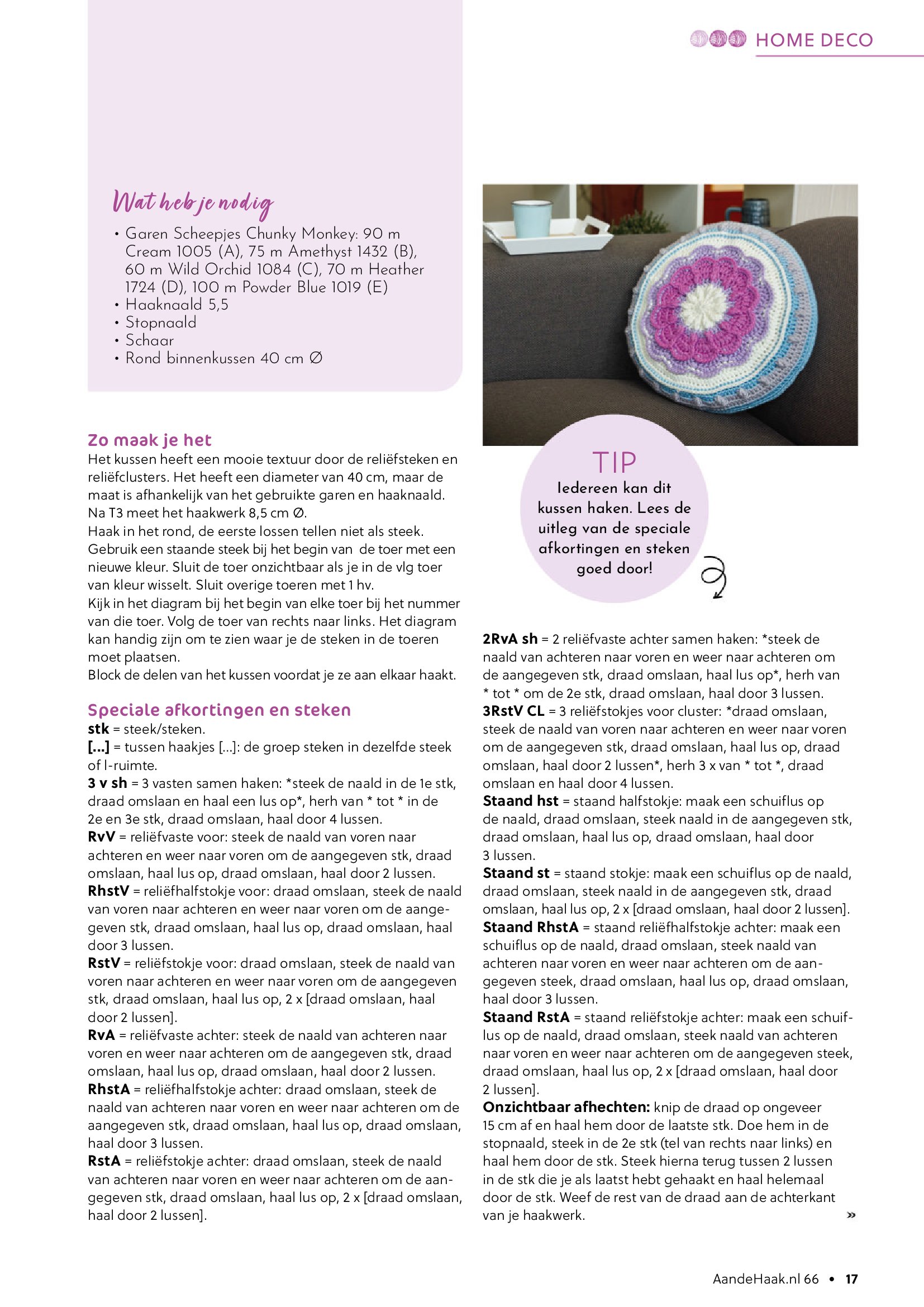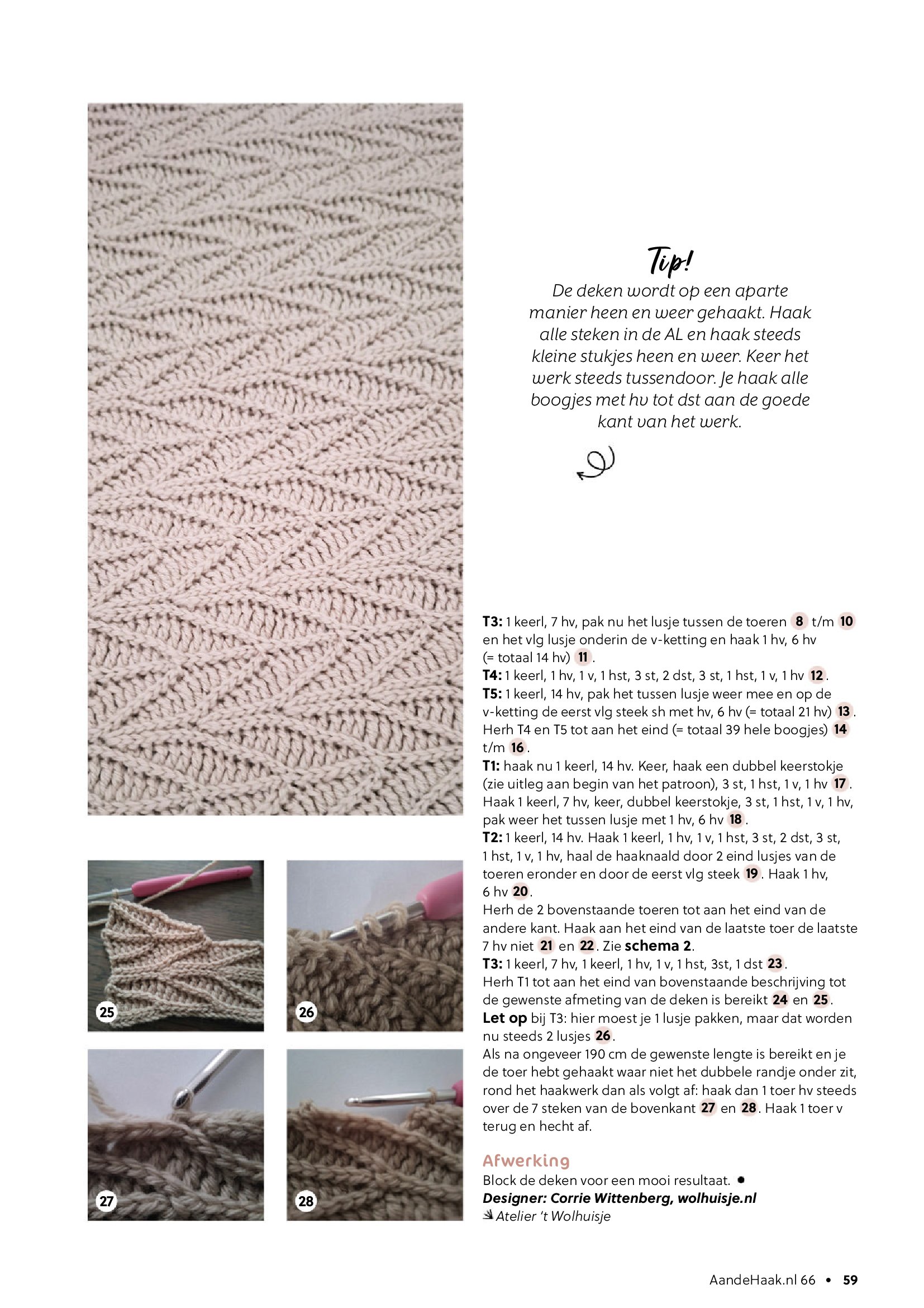 Aan de Haak - журнал о вязании из Нидерландов. Каждый выпуск содержит множество проектов по вязанию спицами и крючком как для самых опытных, так и для начинающих рукодельниц. Хотите ли вы вязать модный шарф или подушку или лучше освоить новую технику? Открывайте журнал и подключайтесь к работе!