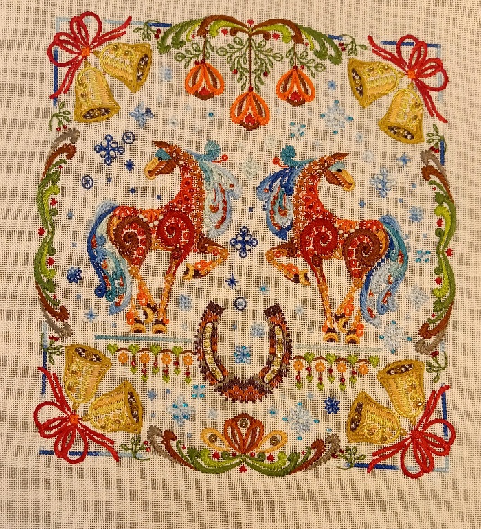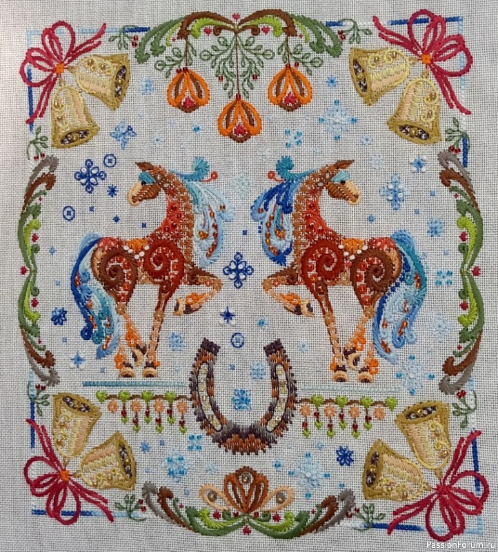 Я успела до нового года закончить в СО "Лошадки" в группе " Мятная клюква" своих лошадок.Вот только оформить вряд ли получится.Ну что ж такой картинке нужна красивая рамка ,подождем ,когда праздники закончатся и заработает багетка.