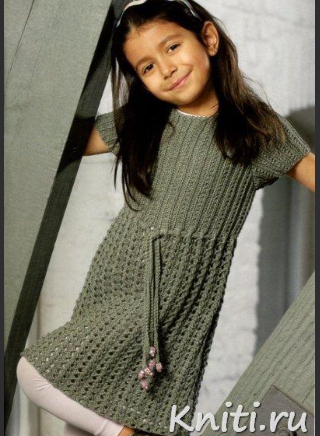 Сборка: Сшить швы. Вырез горловины обвязать крючком 1м рядом рачьим шагом (= столбики без накида слева направо) (= столбик без накида слева направо). Для обоих шнурков пояска набрать по 1й цепочки из воздушных петель 90 (95) cm длиной каждый и провязать 1 ряд столбиков без накида. Шнурки продеть через верхний ряд дырок. На концах пришить по 2 бусины.