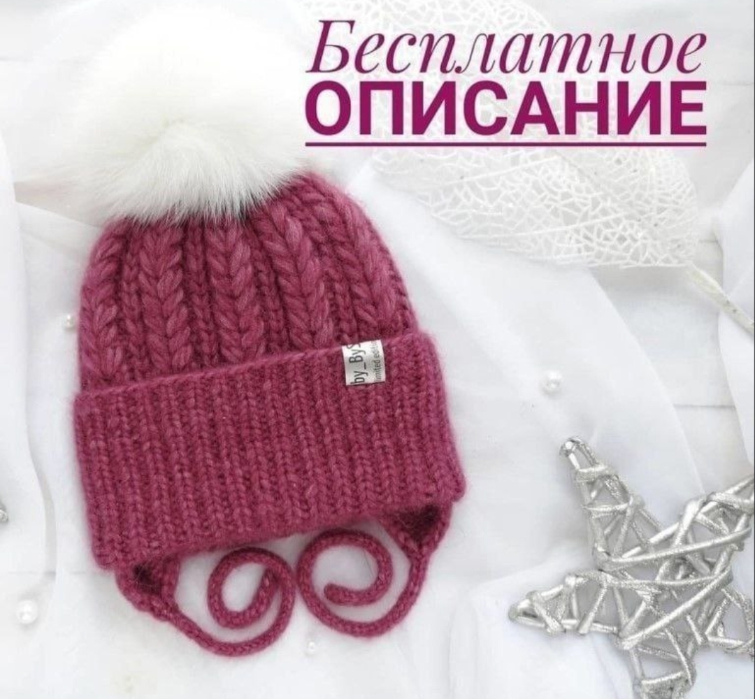 На фоне белоснежной ткани выделяется яркая малиновая шапка, украшенная пушистым белым помпоном. Плетеный узор и аккуратные завязки добавляют изделию шарм и уют.