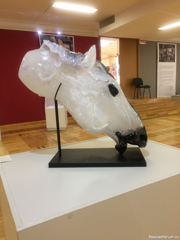 Бюст лошади из горного хрусталя с рубиновыми глазами, работа Питера Мюллера, высота 40 см.