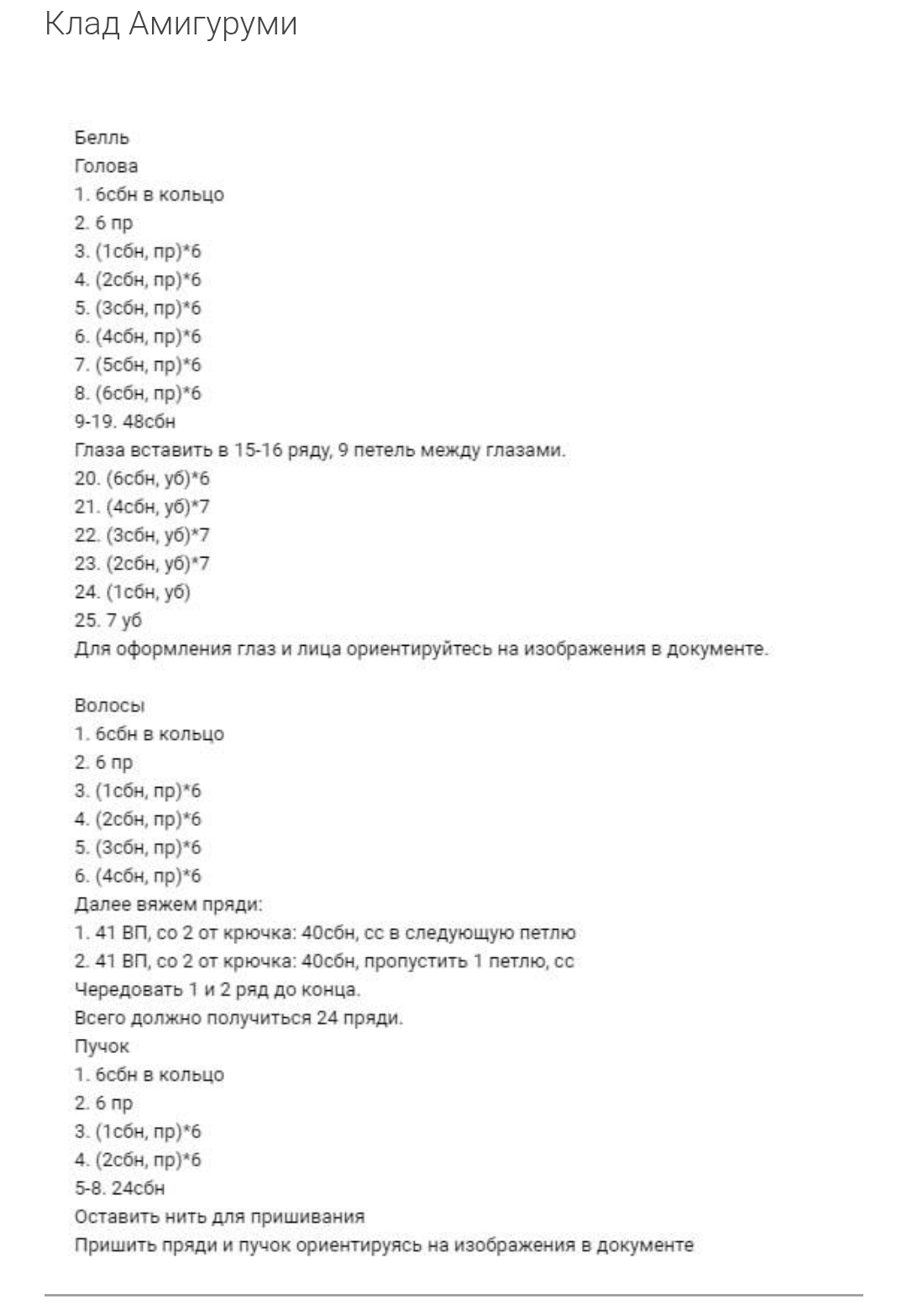 Кукла Бель крючком. МК