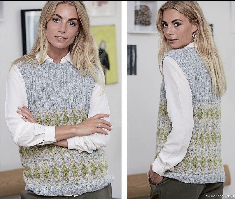 Жаккадовый жилет спицами схема