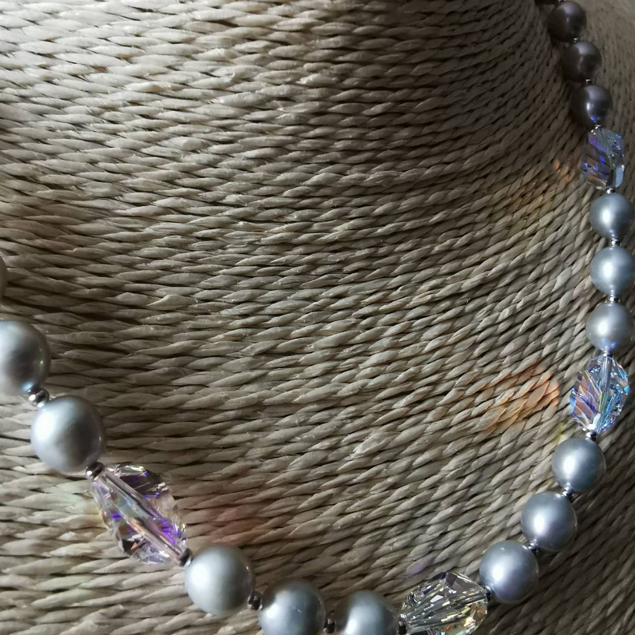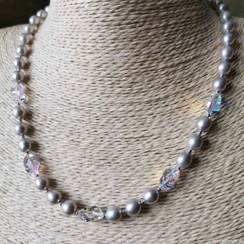 Колье из натурального пресноводного жемчуга с кристаллами Swarovski (оригинал).