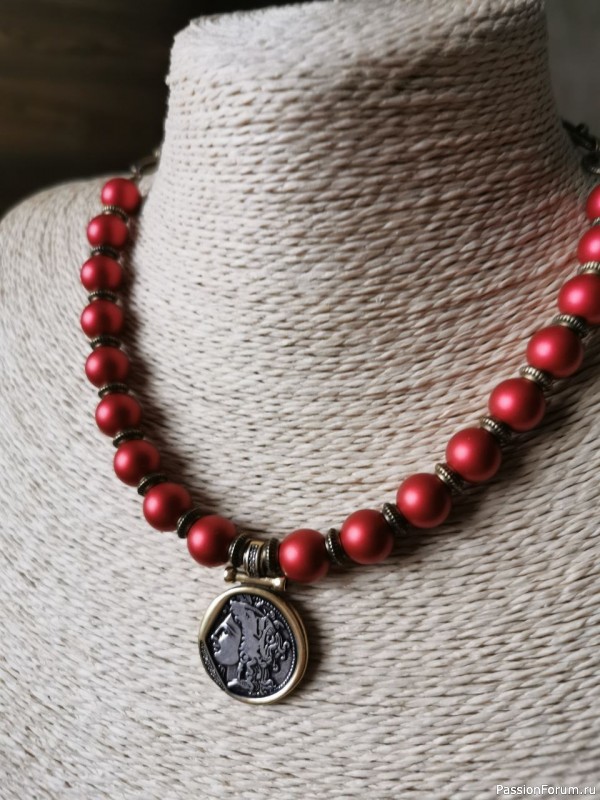 Жемчуг Swarovski (оригинал из личных запасов) красивого красного цвета с перламутровым отливом.