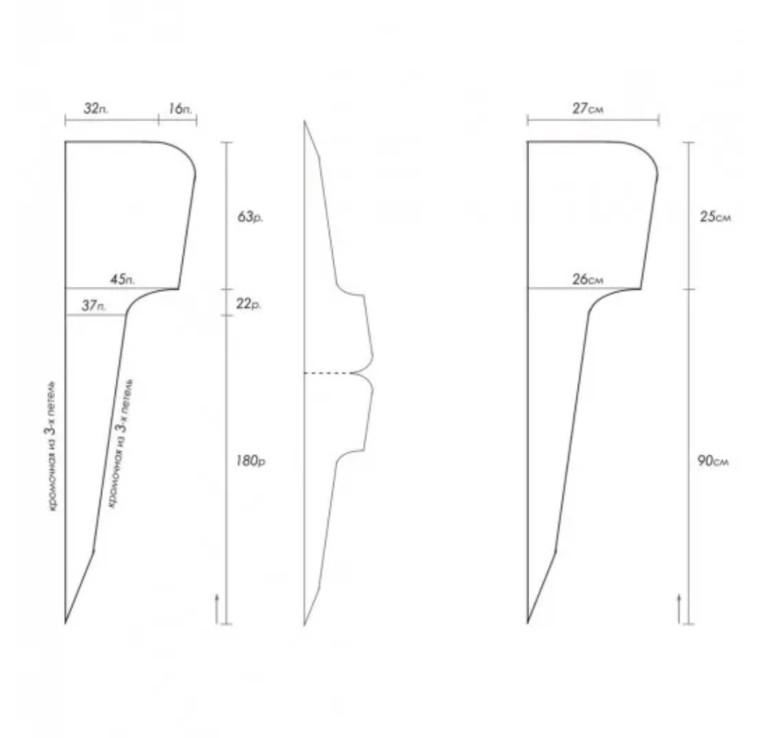 Важно! Тройная кромочная в начале и в конце ряда будет вязаться по всей длине завязок и лицевой части капюшона.