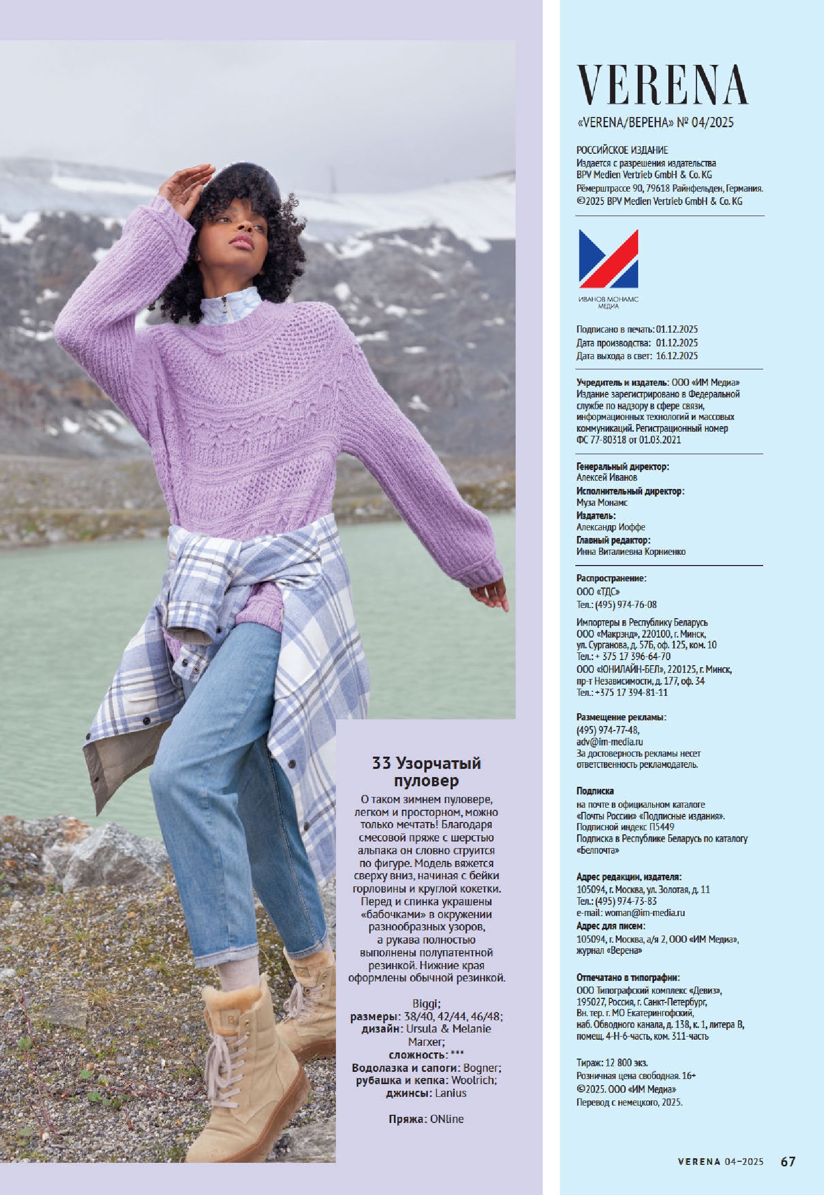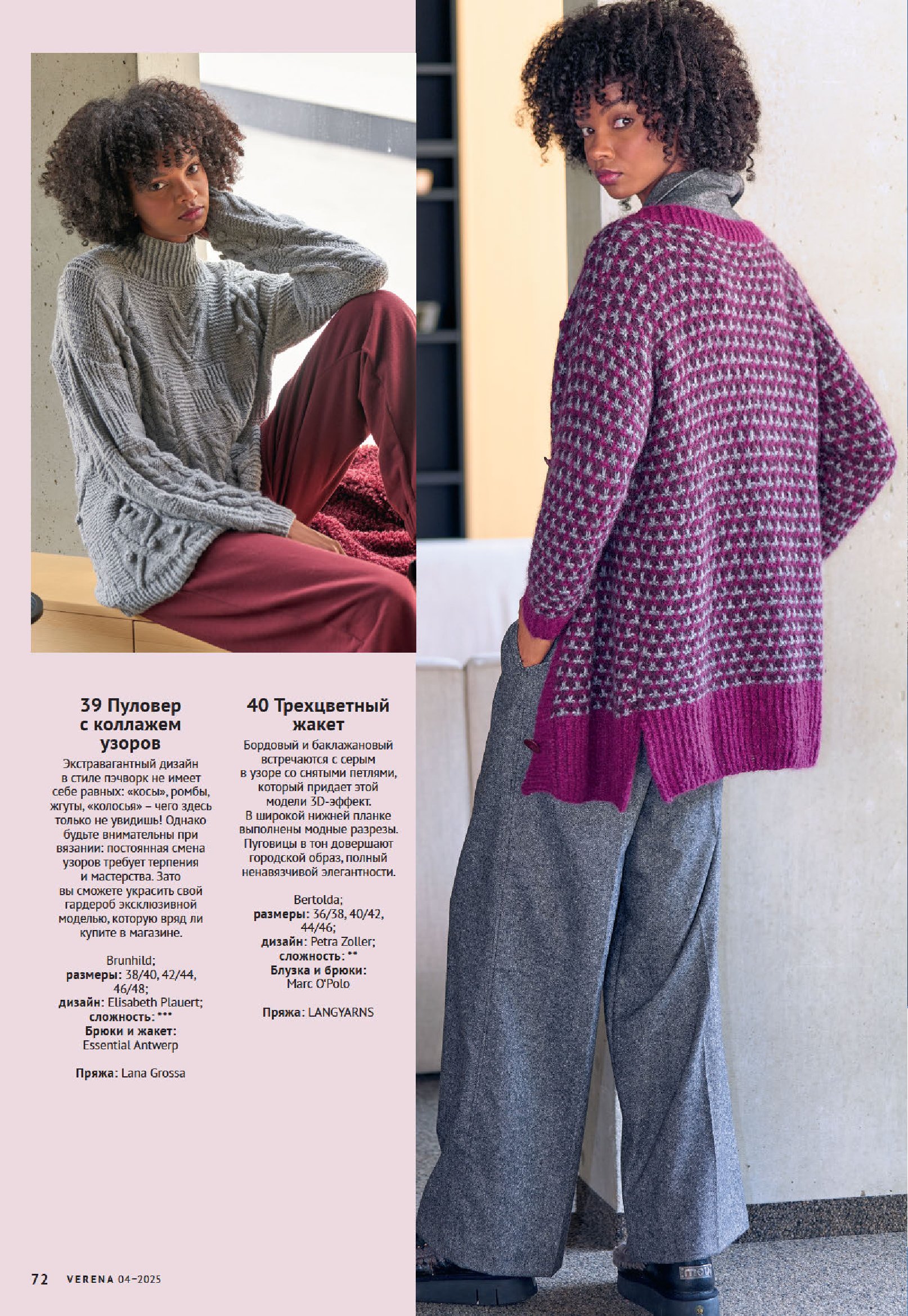 Журнал уже долгие годы остается основным лидером среди изданий по вязанию на спицах и крючком для всей семьи. Журнал рассчитан на опытных мастериц, которым по силам сложные узоры, требующие кропотливой работы, и неординарные конструктивные решения.