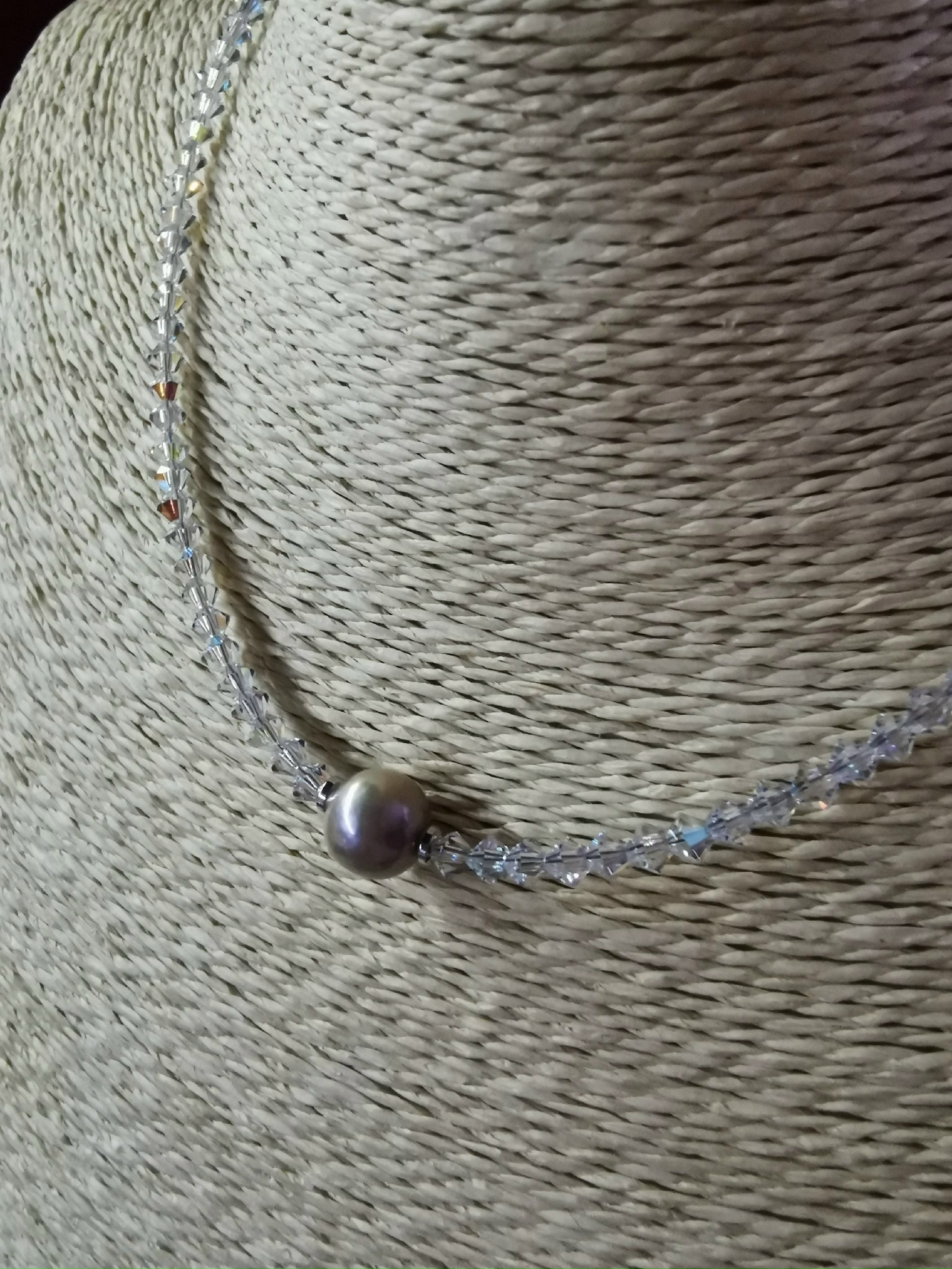 Колье из кристаллов Swarovski с натуральной жемчужиной Эдисон.