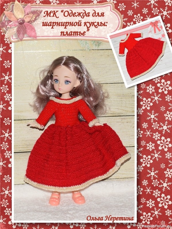 Мастер-класс по вязанию одежды для куклы. Красное платье.