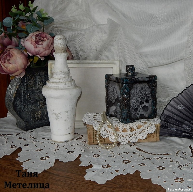 Шкатулка получилась высотой с крышкой 12,5 см, ширина квадратного основания 11 см. Благодарю, что зашли в гости!!!