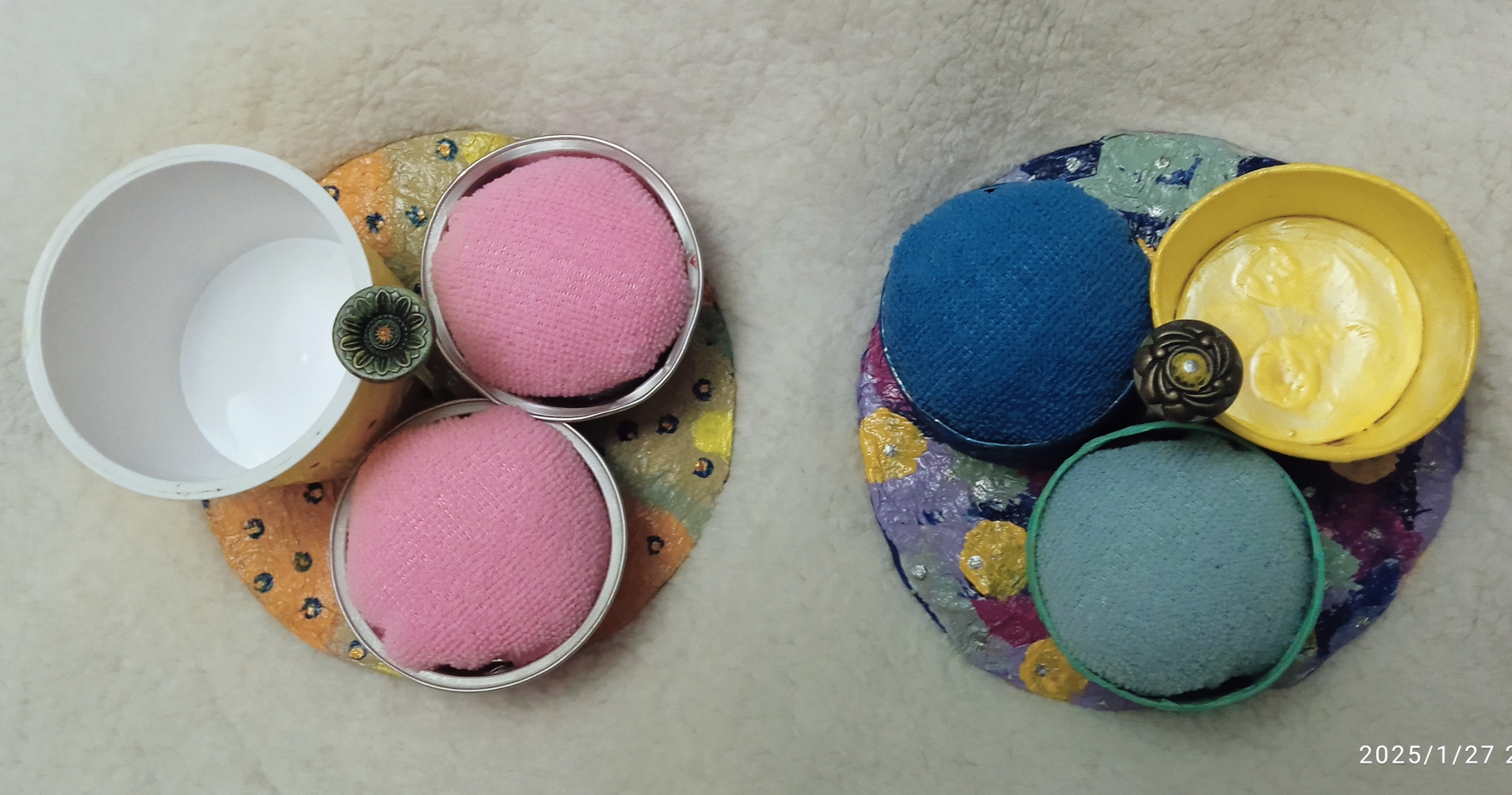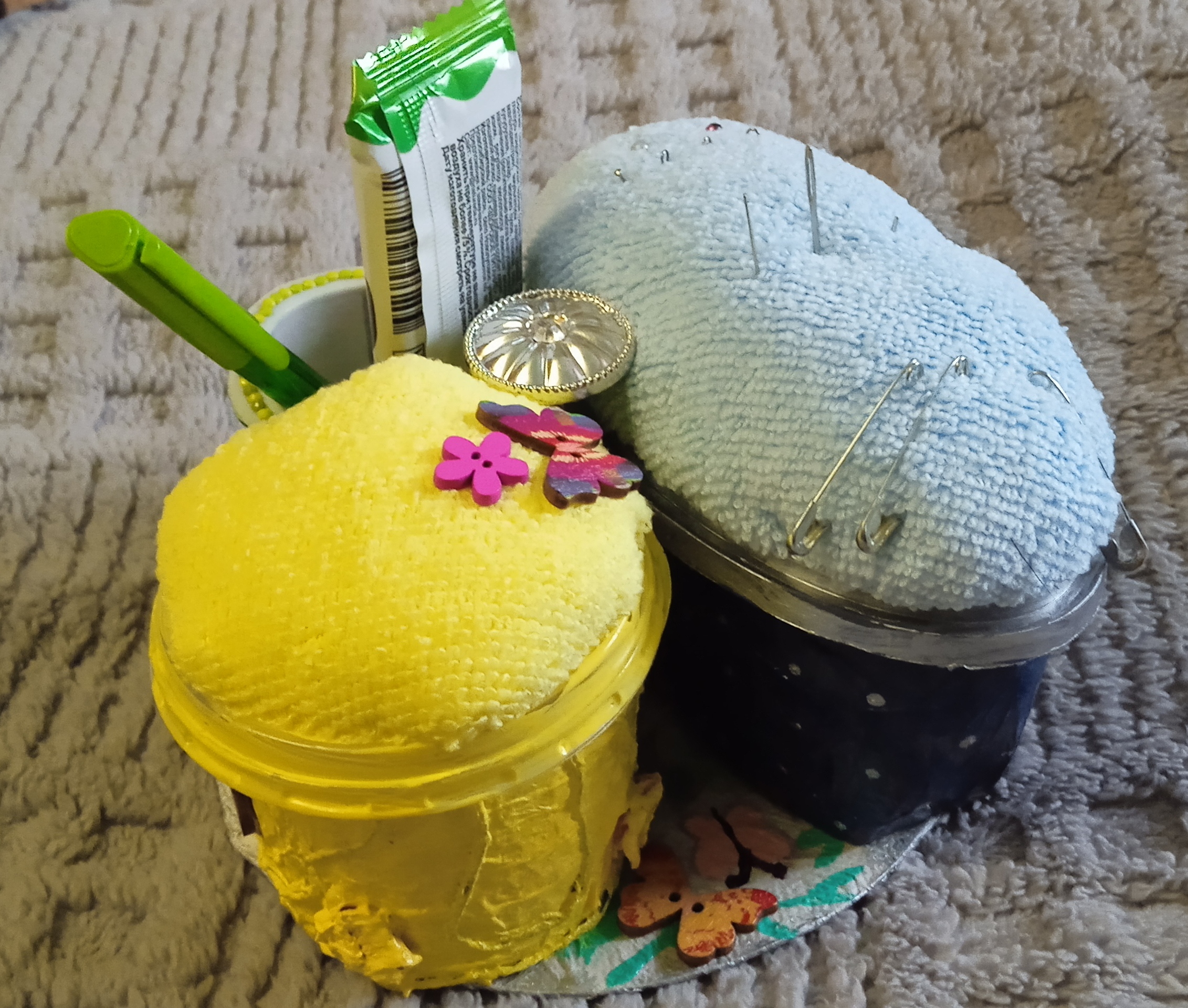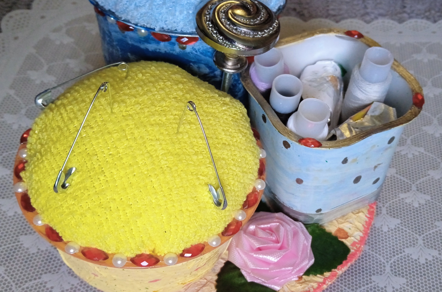 Каждый год члены нашего клуба "Энергия" получают в День рождения небольшие подарки, сделанные своими руками. В 25 году каждая получила игольницу, сделанную из подручных средств с содержимым. Приятно, что подключились ещё: одна вязала следочки, а вторая шила сумочки для документов из чайных пакетиков. Вот некоторые: