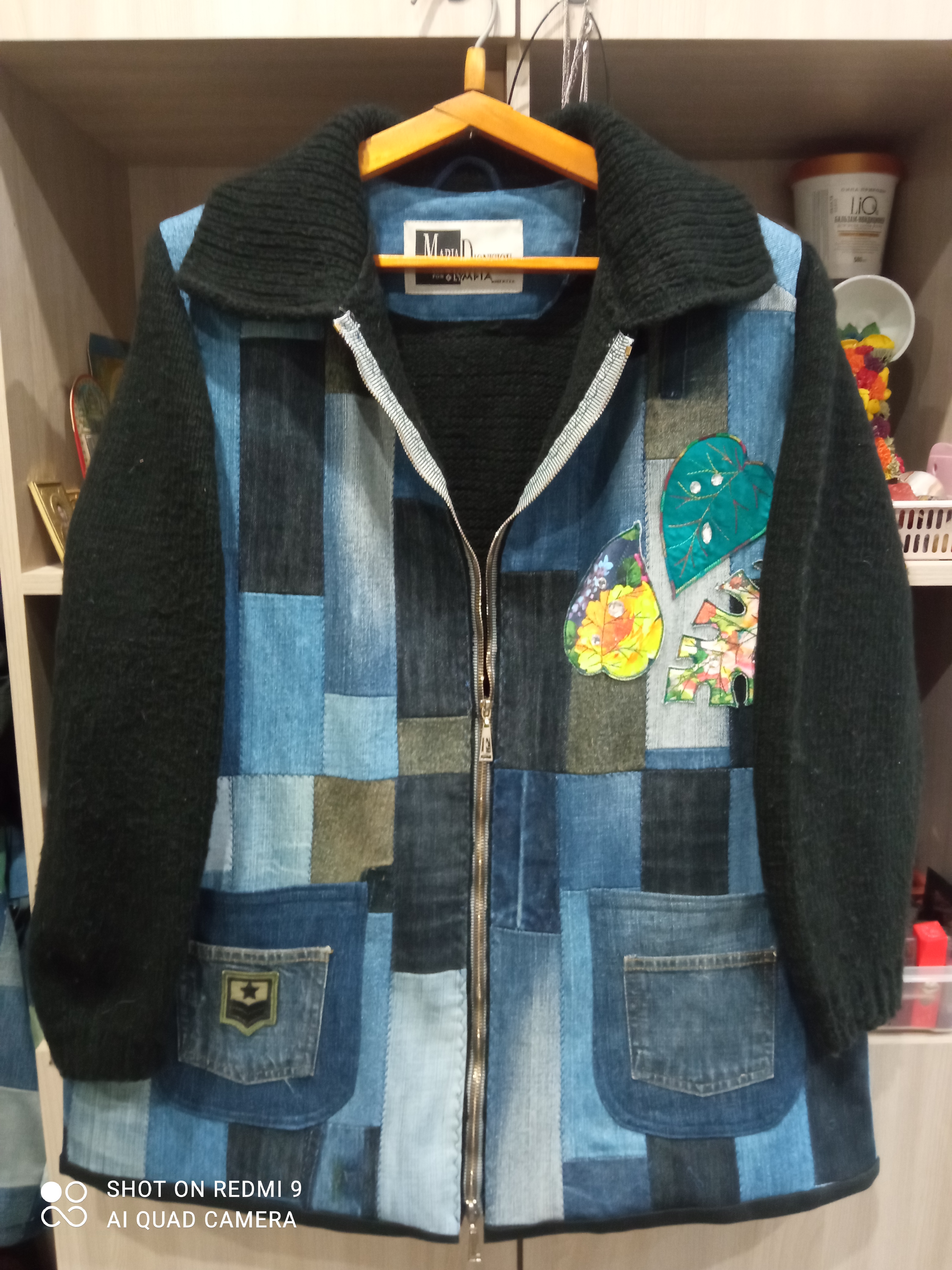 Приветствую всех рукодельниц и предлагаю посмотреть очередную переделку. Когда-то я сшила джинсовый жилет с капюшоном на байковой подкладке. Я его показывала на сайте. Но, одела я его только несколько раз. А также у меня лежала вязаная лет тридцать назад своими руками чёрная кофта на замке. Оттого что она не модная я её тоже одела несколько раз. Отдать её было жалко, она тёплая и мягкая. И родилась у меня идея соединить эти два изделия. Я отпорола подклад и капюшон у жилета и соединила его с вязанной кофтой. Результат налицо. Получилась тёплая и мягкая джинсовая курточка. Сейчас модно соединять джинсу с разными тканями, кожей и трикотажем. Вот я и поработала в этом направлении. Мне будет приятно, если такая идея ещё кому нибудь пригодится. Спасибо, что заглянули и приятного просмотра.