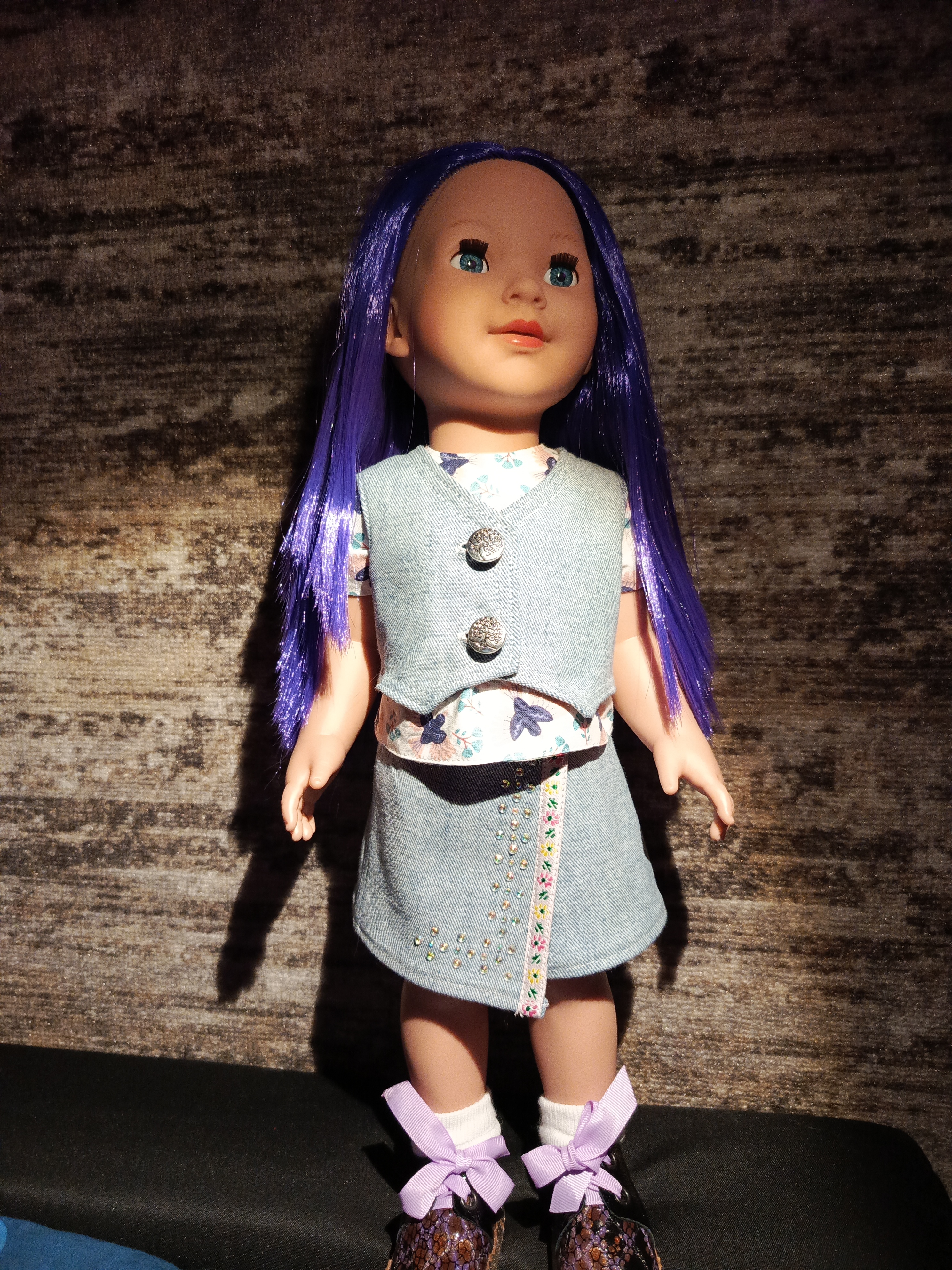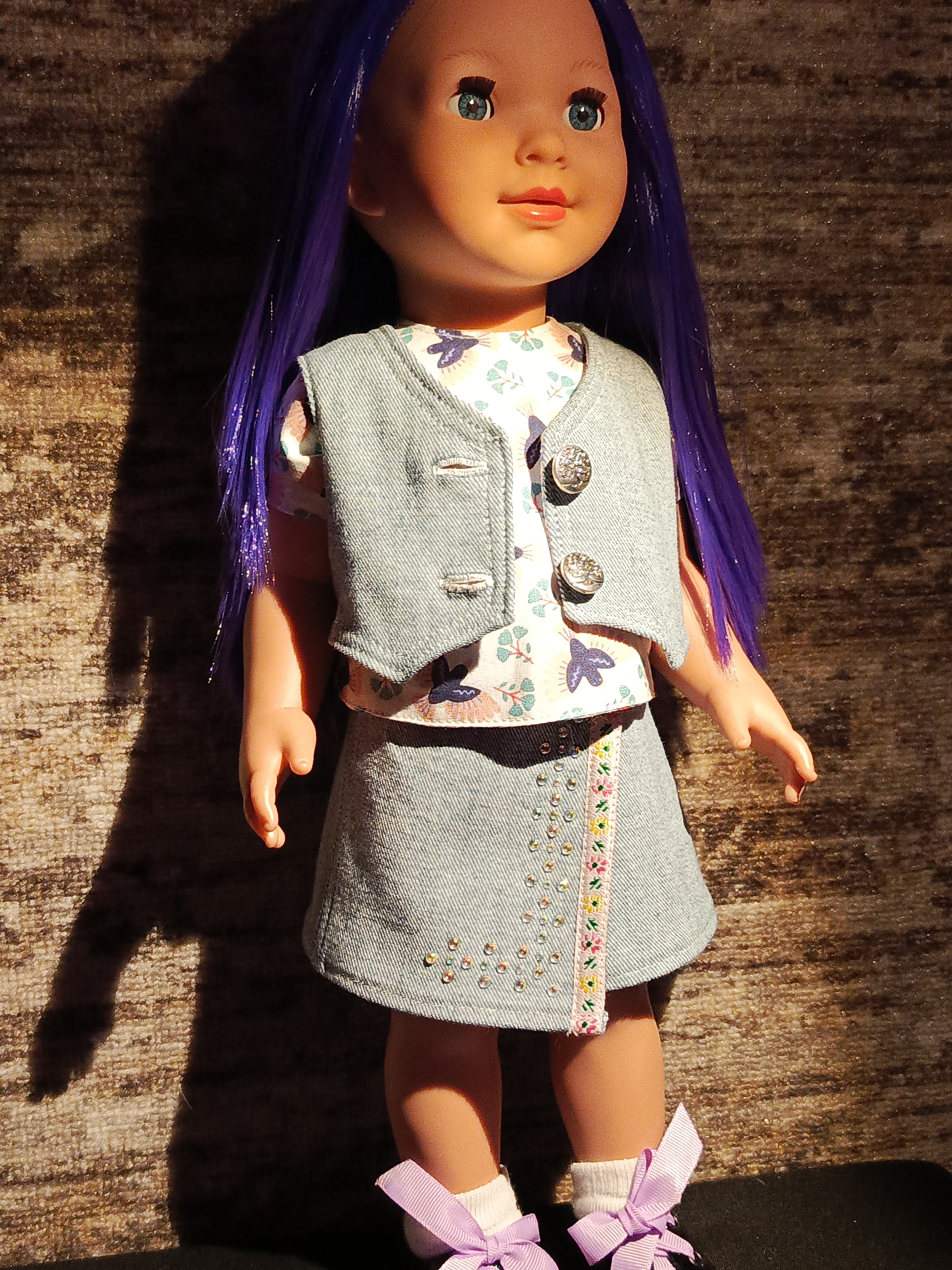 Мне очень понравился ваш комплект(юбка и жилетик), заберу себе (мне нравится джинса, я недавно своим зайцам-«студентам» тоже сшила одежду из джинсы и выглядит неплохо, топик о зайцах есть).