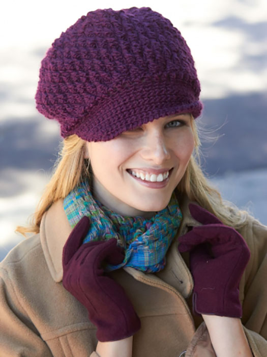 Козырек: соединить нить в 9-й столбик от конца работы, меньшим крючком вязать: