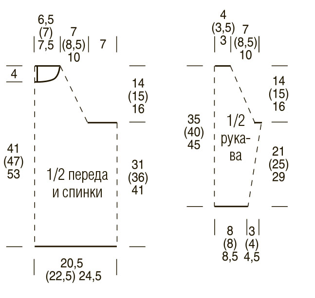 Плотность вязания: 27 п. х 35 р. = 10 x 10 см, связано лицевой гладью.