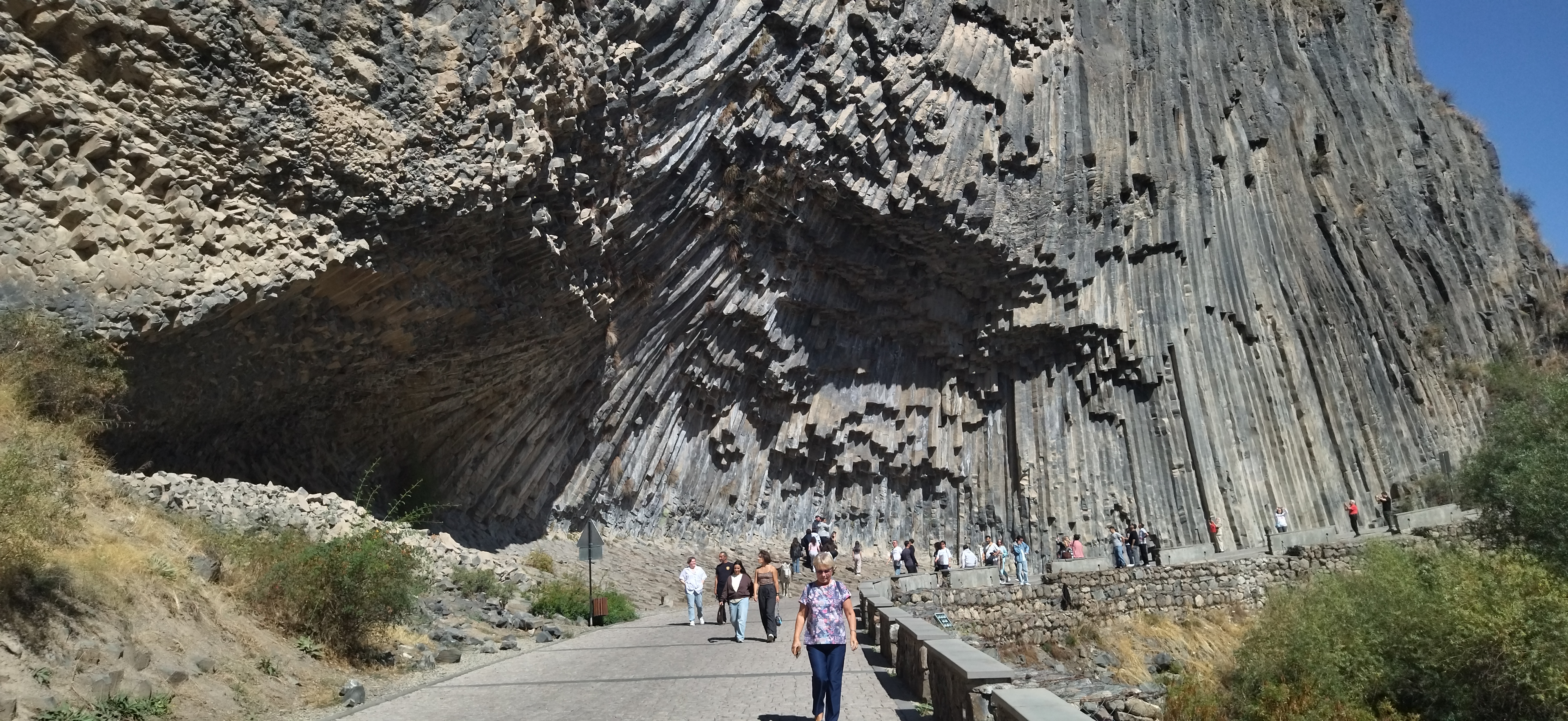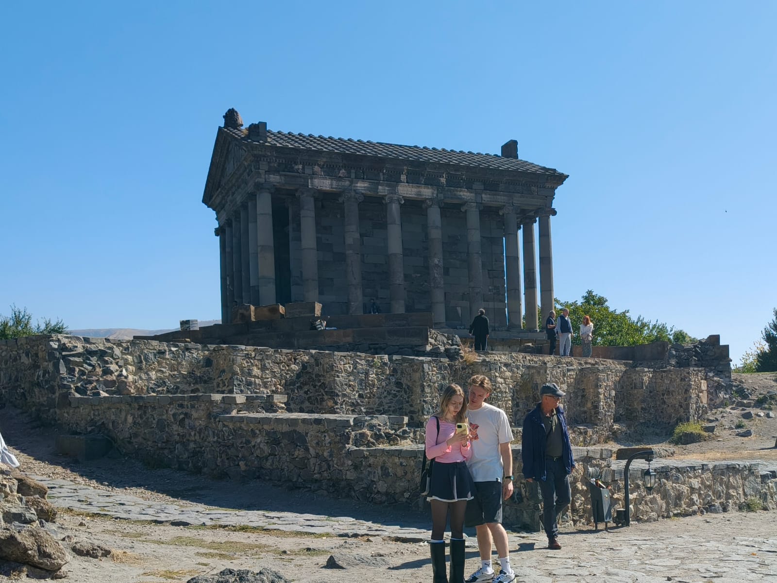 Храм Гарни. Это I век. Первый век. Стиль греческой архитектуры. Это единственный сохранившийся языческий храм на постсоветском пространстве. К сожалению в 17 веке был разрушен. Было очень мощное землетрясение и эпицентр пришелся как раз на Гарни